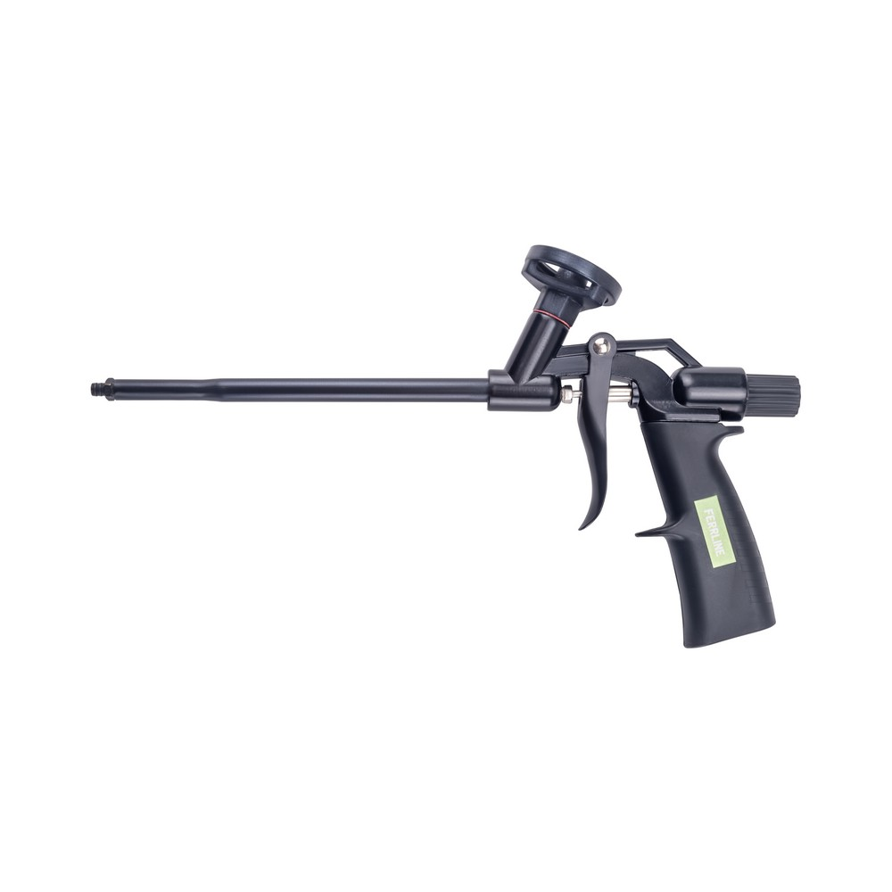 Пистолет для монтажной пены FerrLine FM-13. Предназначен для проведения работ с профессиональной монтажной пеной при установке дверей, окон, различных строительных конструкций. Прочная и крепкая металлическая конструкция гарантирует эксплуатационную надежность и долговечность, а удобная и эргономичная рукоятка снижает усилие и нагрузку при нажатии в ходе выполнения работы. Винт регулировки подачи пены обеспечивает более точное и аккуратное нанесение. Тефлоновое покрытие значительно облегчает регулярную чистку инструмента от пены, которую всегда нужно производить после его использования. Оно надёжно препятствует налипанию пены. Благодаря этому, можно без излишних усилий и хлопот очищать с инструмента все остатки застывшей пены снаружи и не застывшей – изнутри.