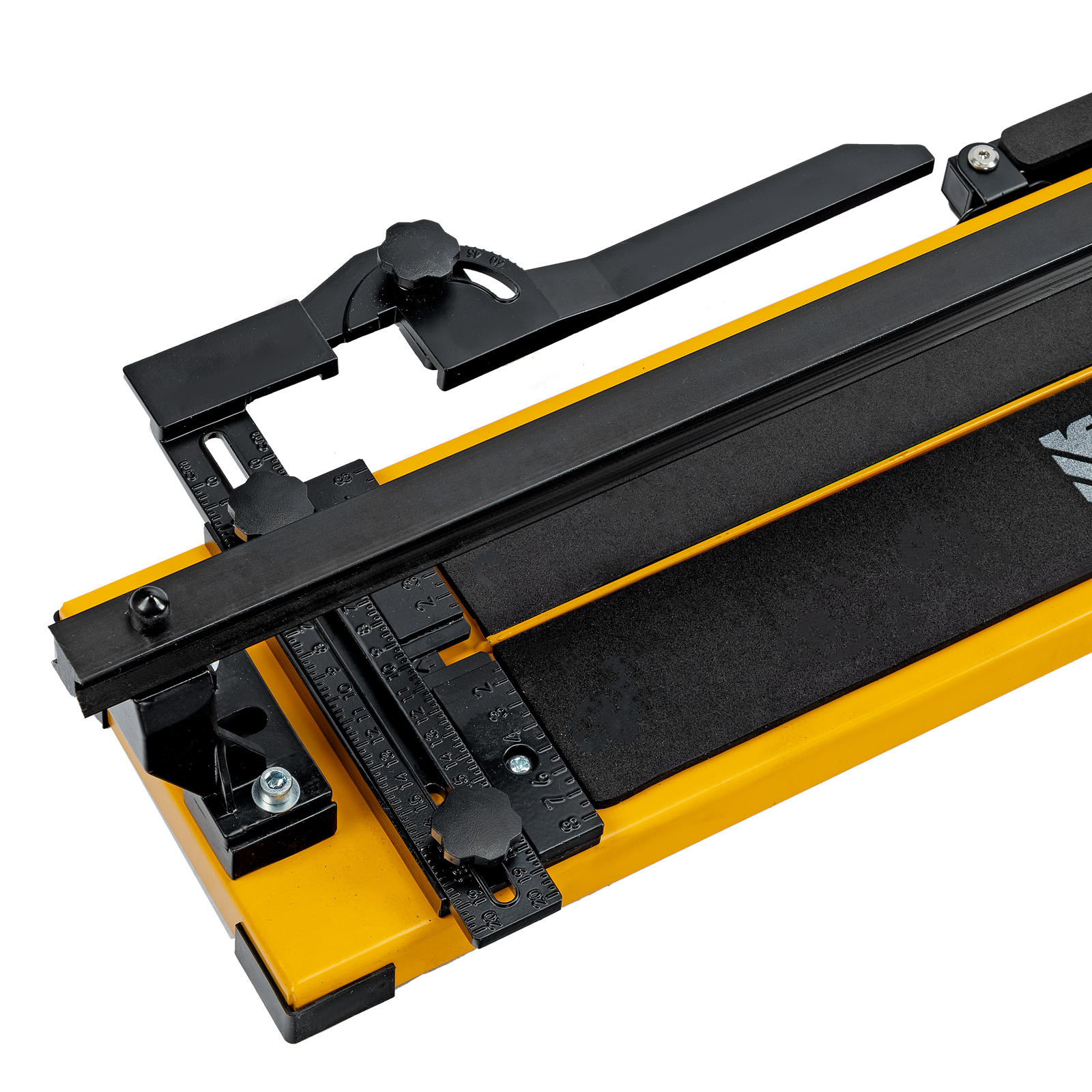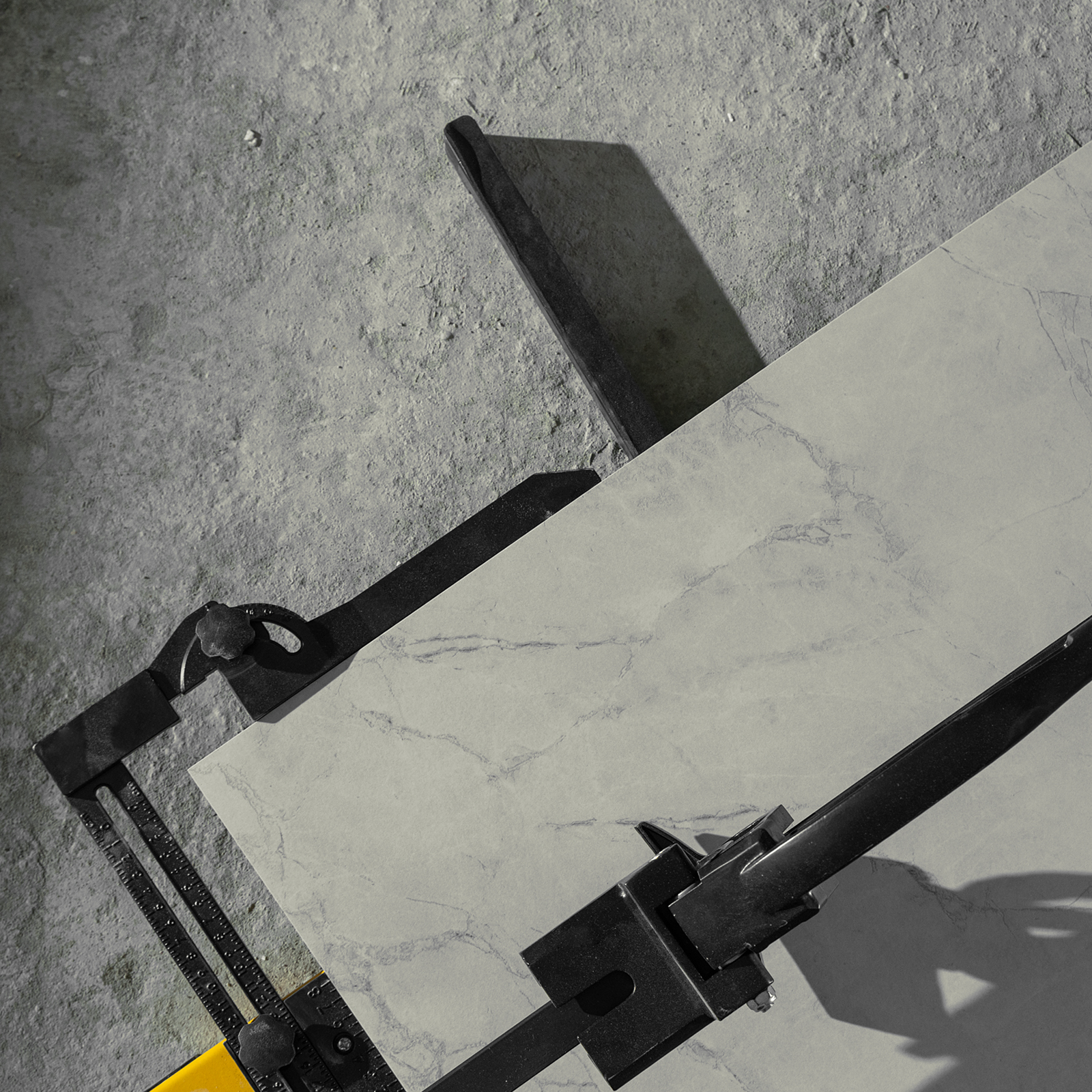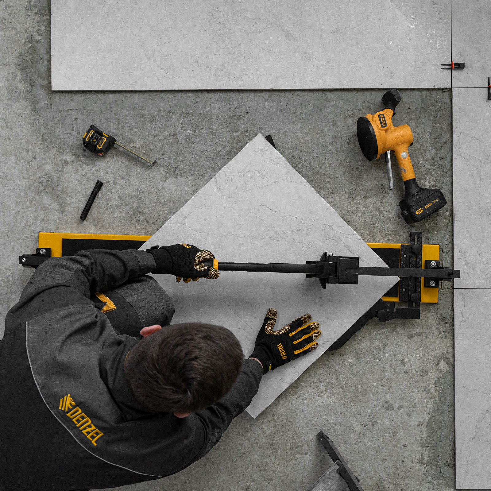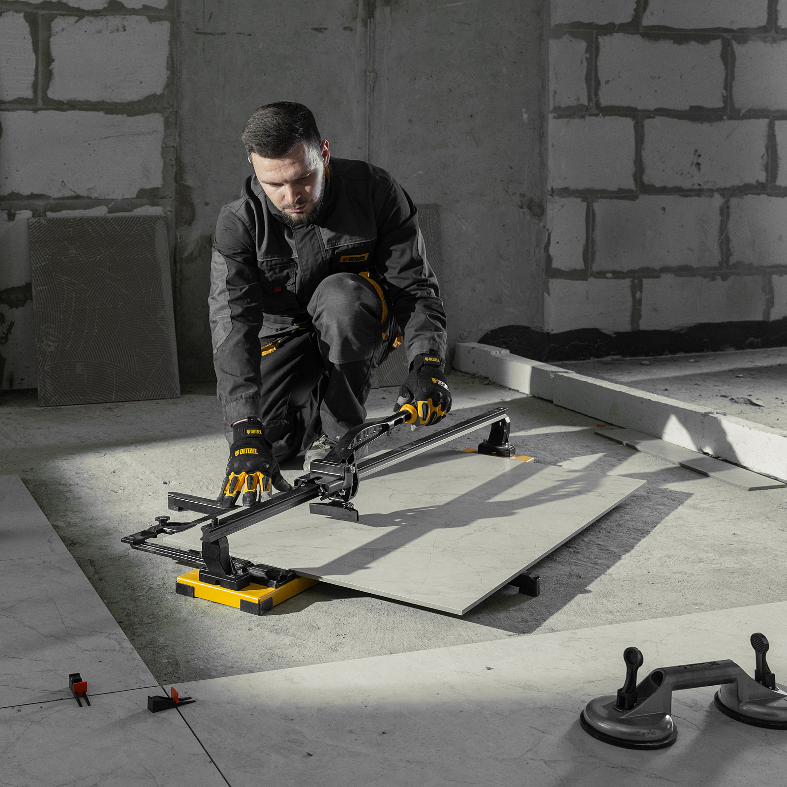 - Удобная работа — благодаря противоскользящим накладкам плиткорез не смещается даже на гладких поверхностях.