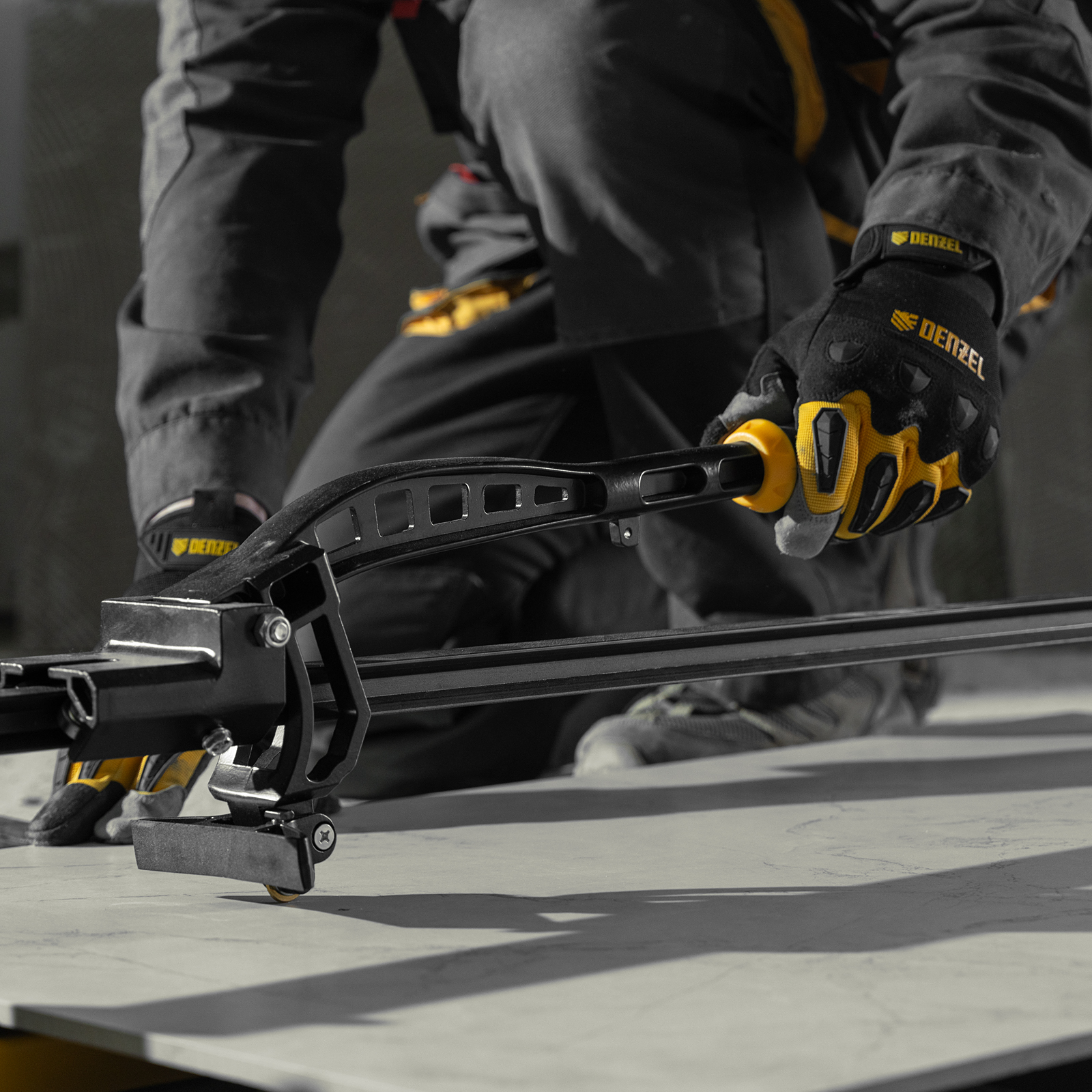 Плиткорез рельсовый 1000х16мм, каретка на подш., стальная станина, усил. рукоятка-пенал Denzel в Уфе