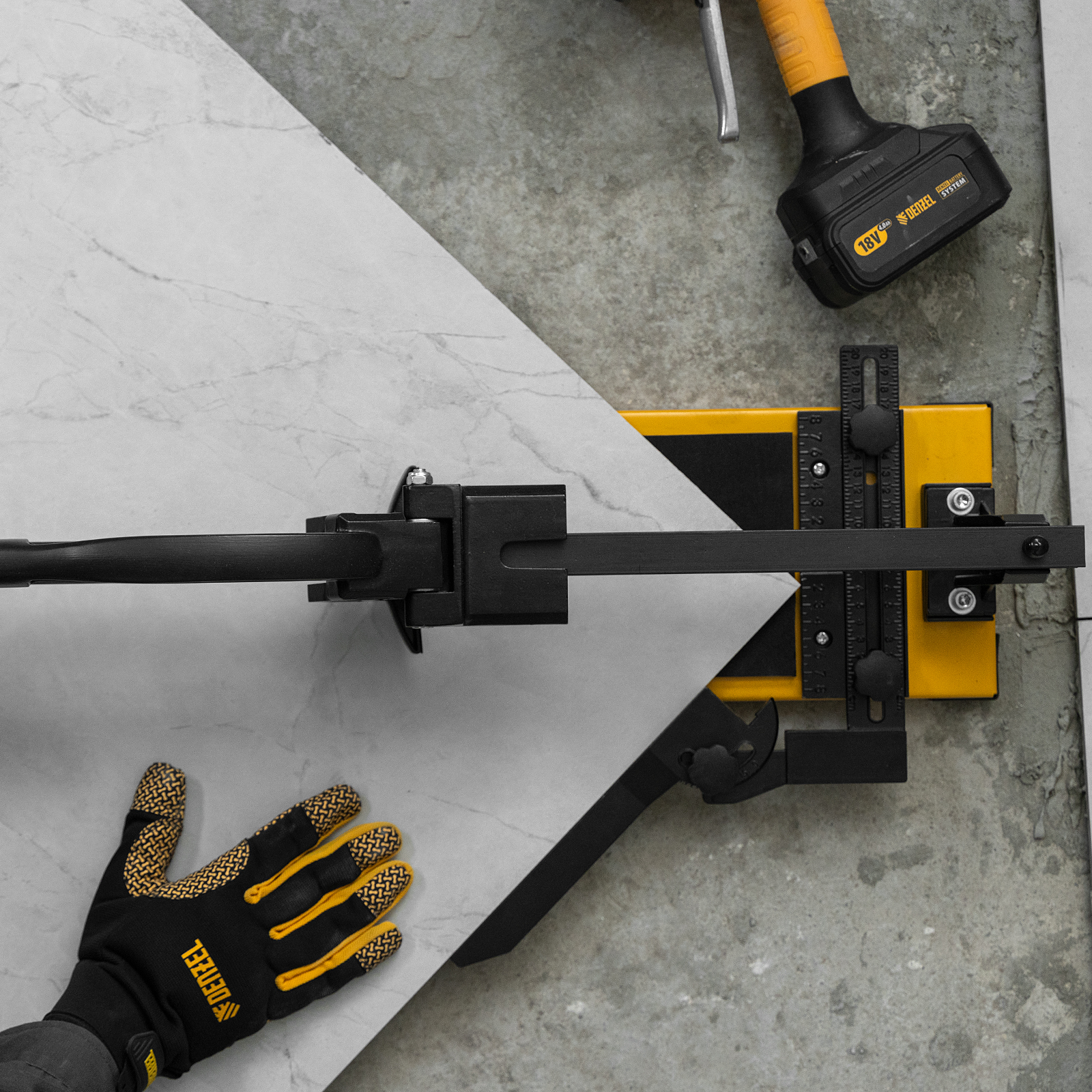 - Эргономичность — плитколом с магнитным держателем не создает помех во время резки.