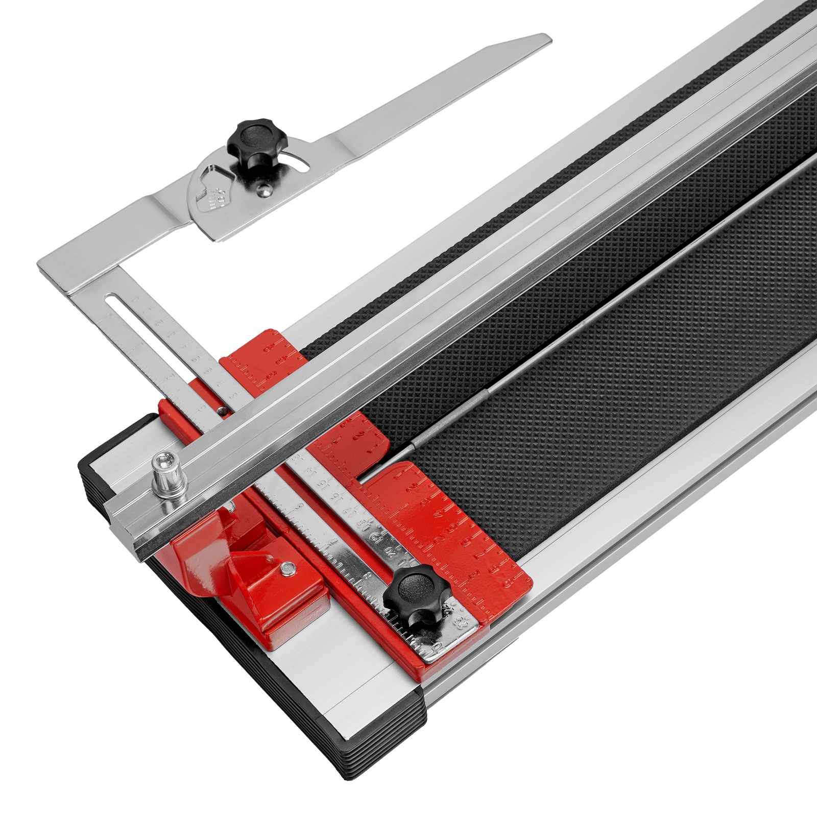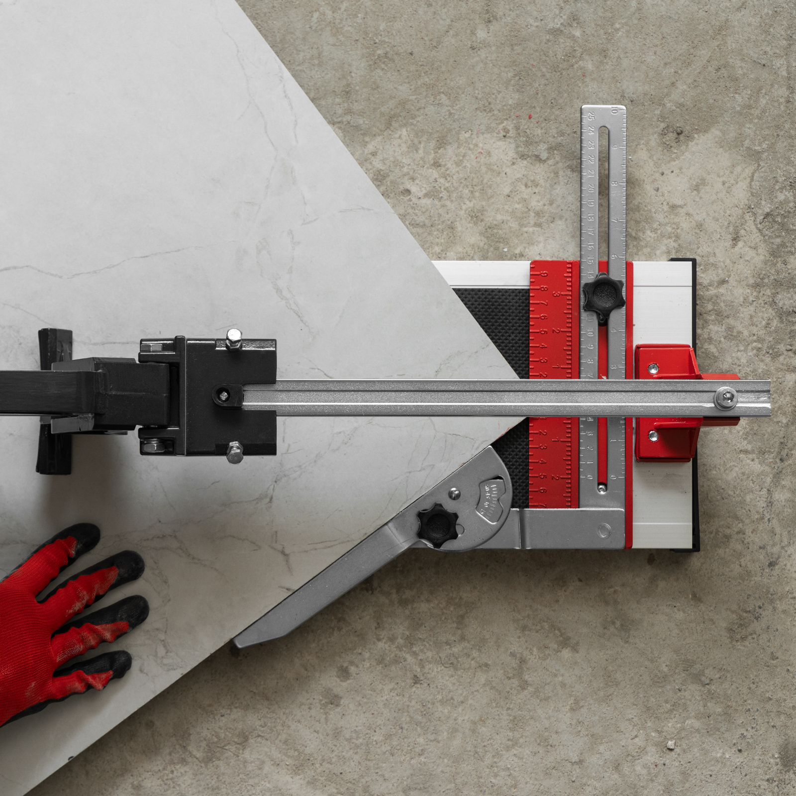 - Резка под углом до 45° — производителем предусмотрен поворотный угольник-угломер, обеспечивающий также дополнительную фиксацию плитки.