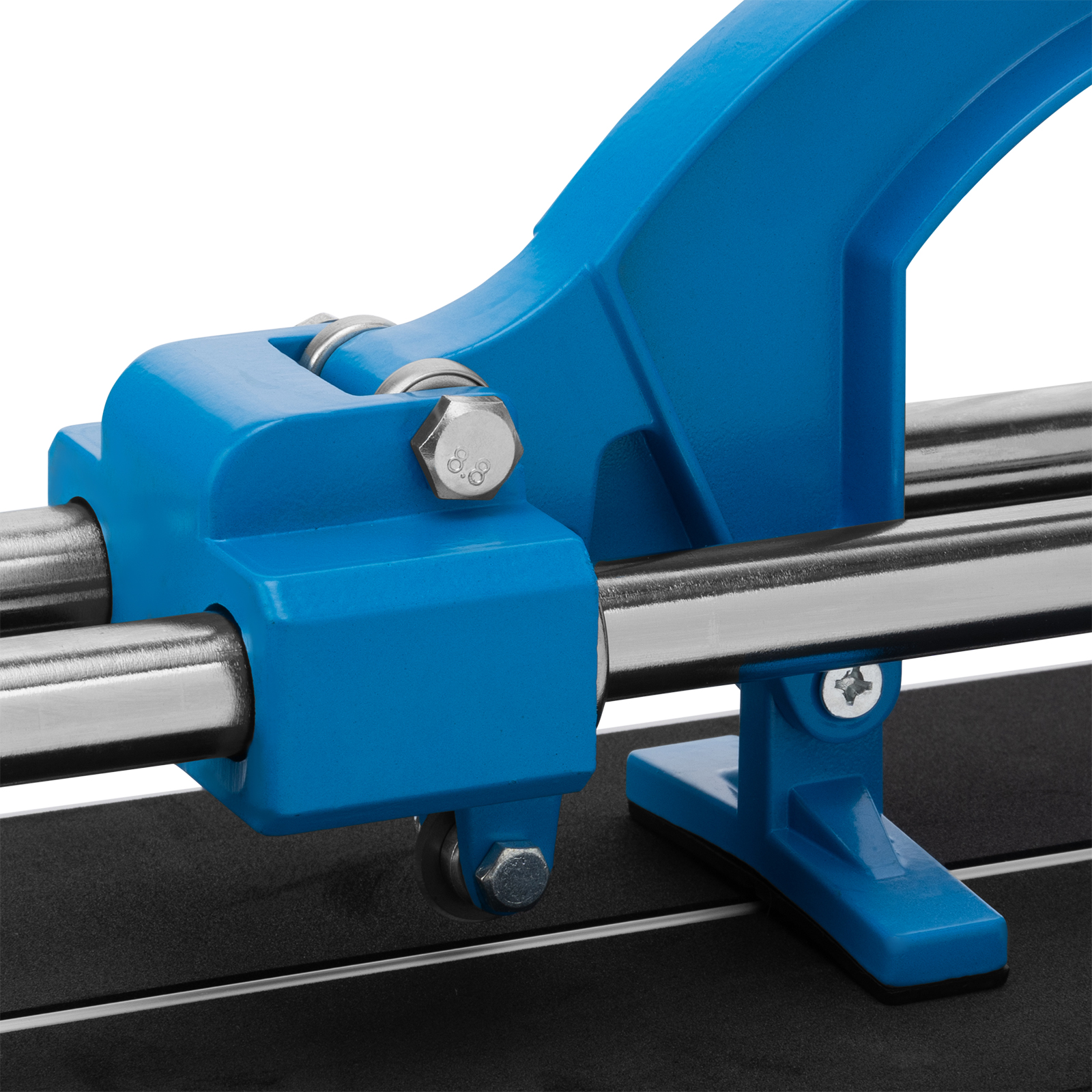 - Надежная фиксация плитки — цельнолитая станина из алюминиевого сплава обеспечивает устойчивость плиткореза, резиновые амортизаторы предотвращают удар каретки о стойку.