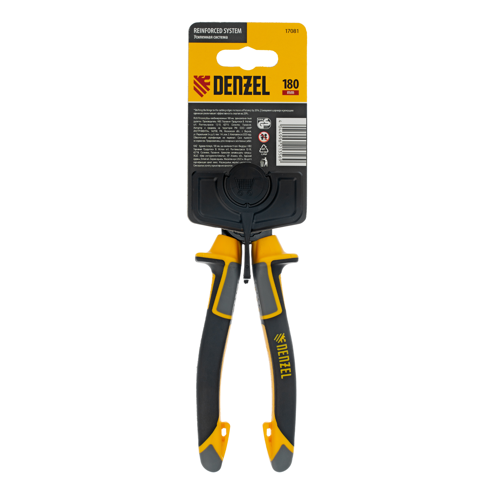 Плоскогубцы комбинированные 180 мм, трехкомпонентные рукоятки Denzel в Уфе