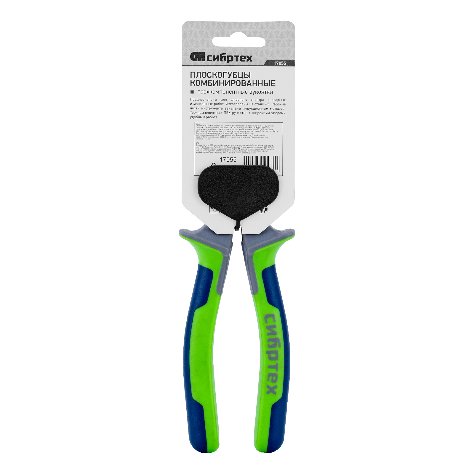 Плоскогубцы комбинированные, 200 мм, фосфатирование, трехкомпонентные рукоятки Сибртех в Уфе