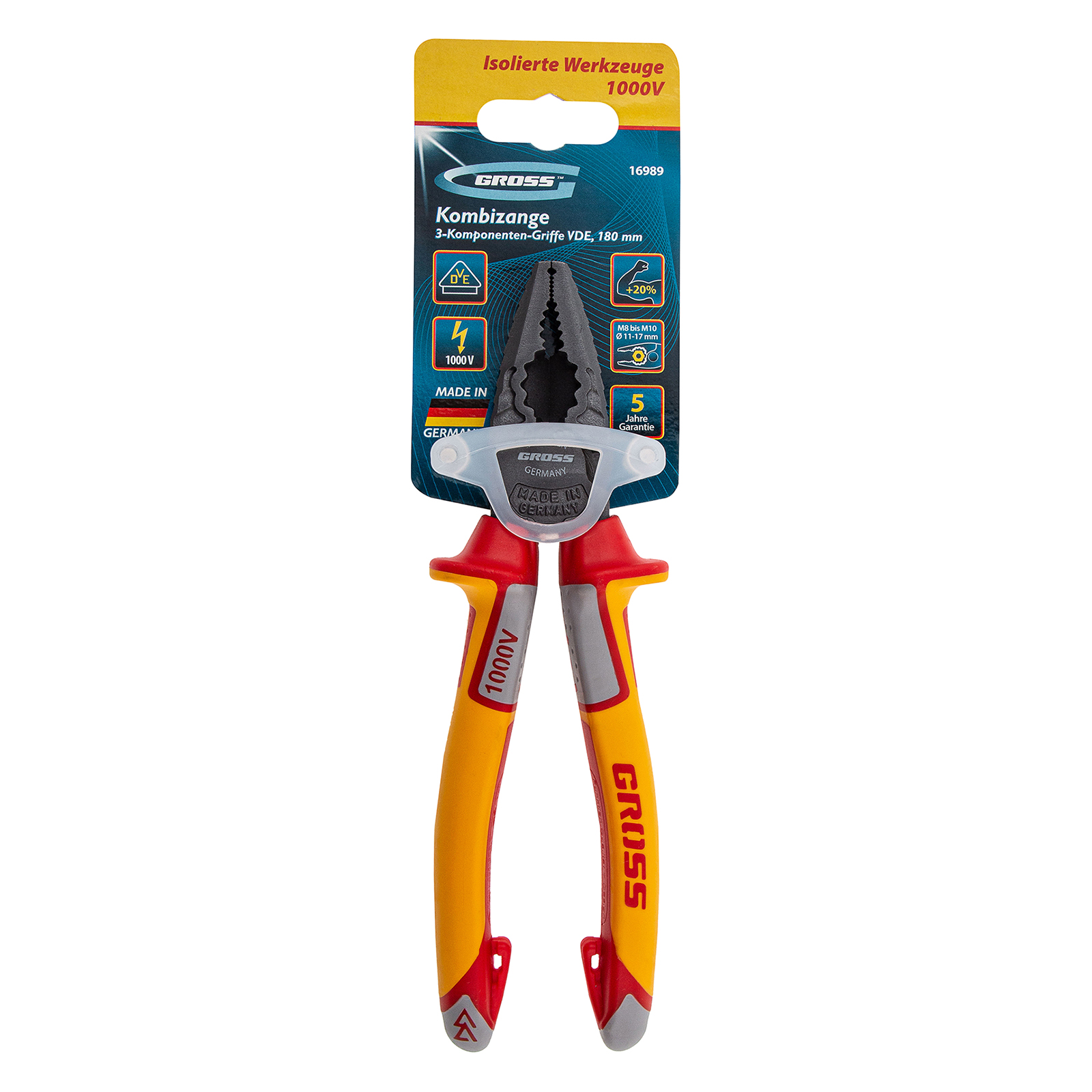 Комбинированные плоскогубцы Gross 16989 длиной 180 мм, с диэлектрическими трехкомпонентными рукоятками, выдерживающими до 1000 В, рассчитаны на работу с токопроводящими элементами. С их помощью можно захватить, перекусить или согнуть мелкие и крупные детали. Также плоскогубцы можно использовать в качестве гаечного ключа. Инструмент станет незаменимым помощником слесарям и монтажникам при работе с различным оборудованием и материалами. Перед началом работ следует отключить напряжение.