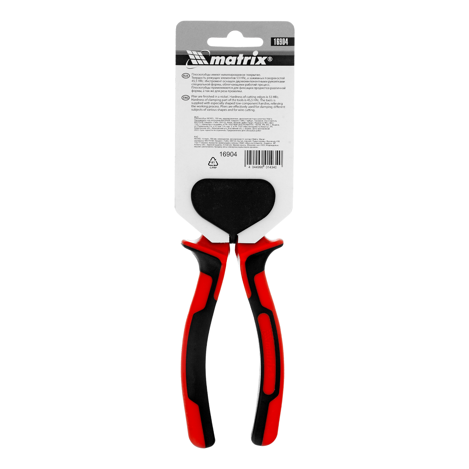 Плоскогубцы Nickel, 180 мм, никелированные, двухкомпонентные рукоятки Matrix в Уфе