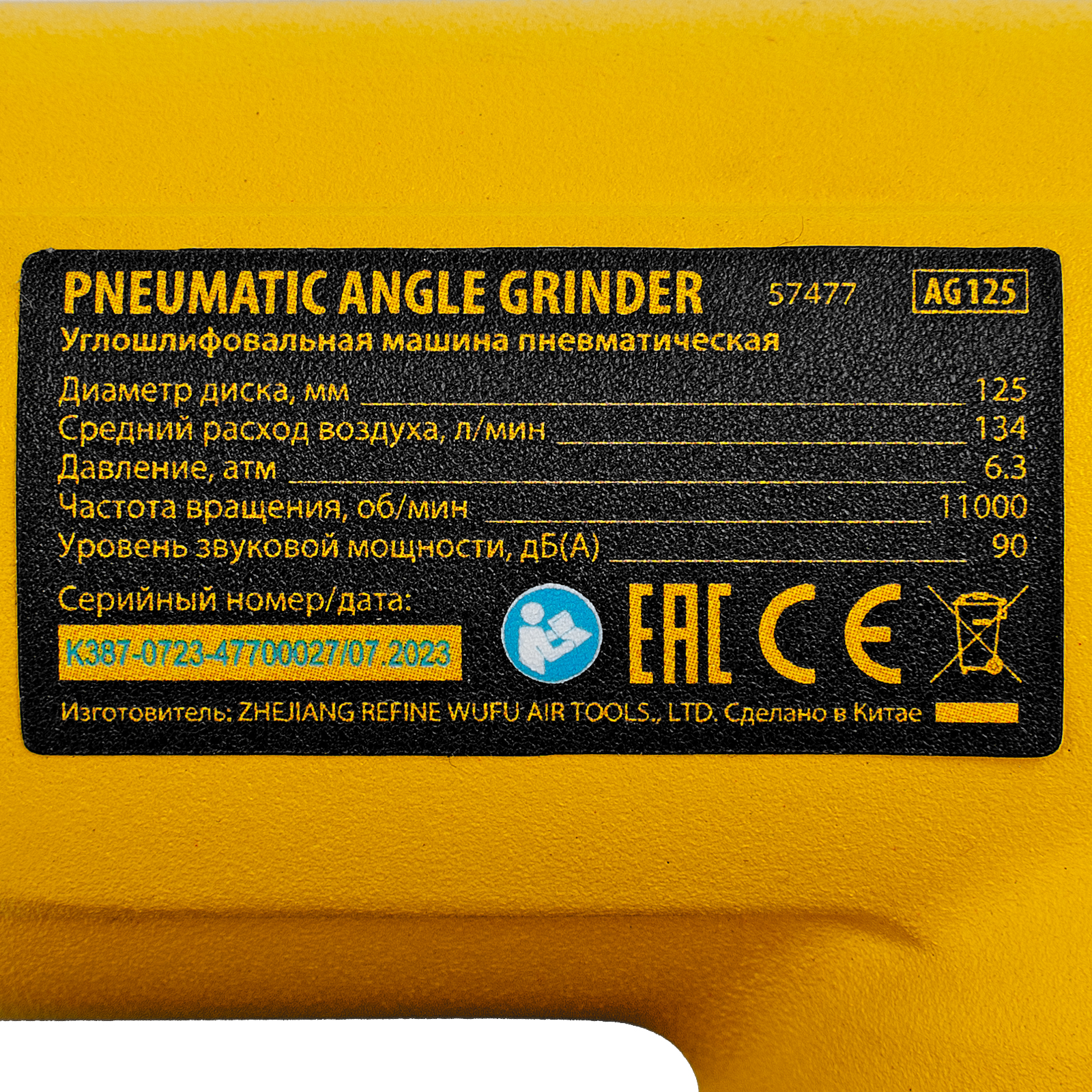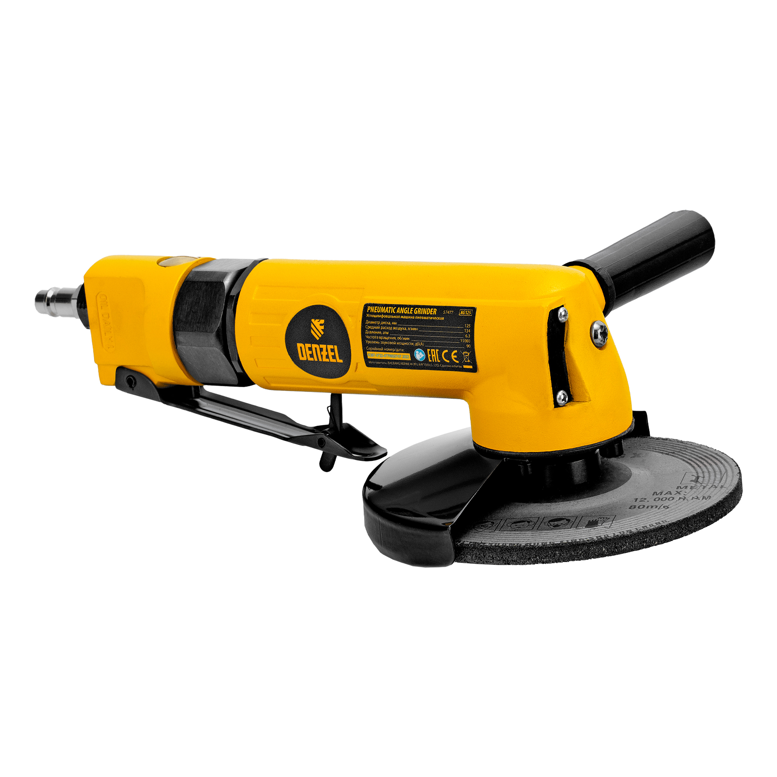 Пневматическая углошлифовальная машина AG125, 11000 об/мин, 125 мм, 186 л/мин Denzel в Уфе