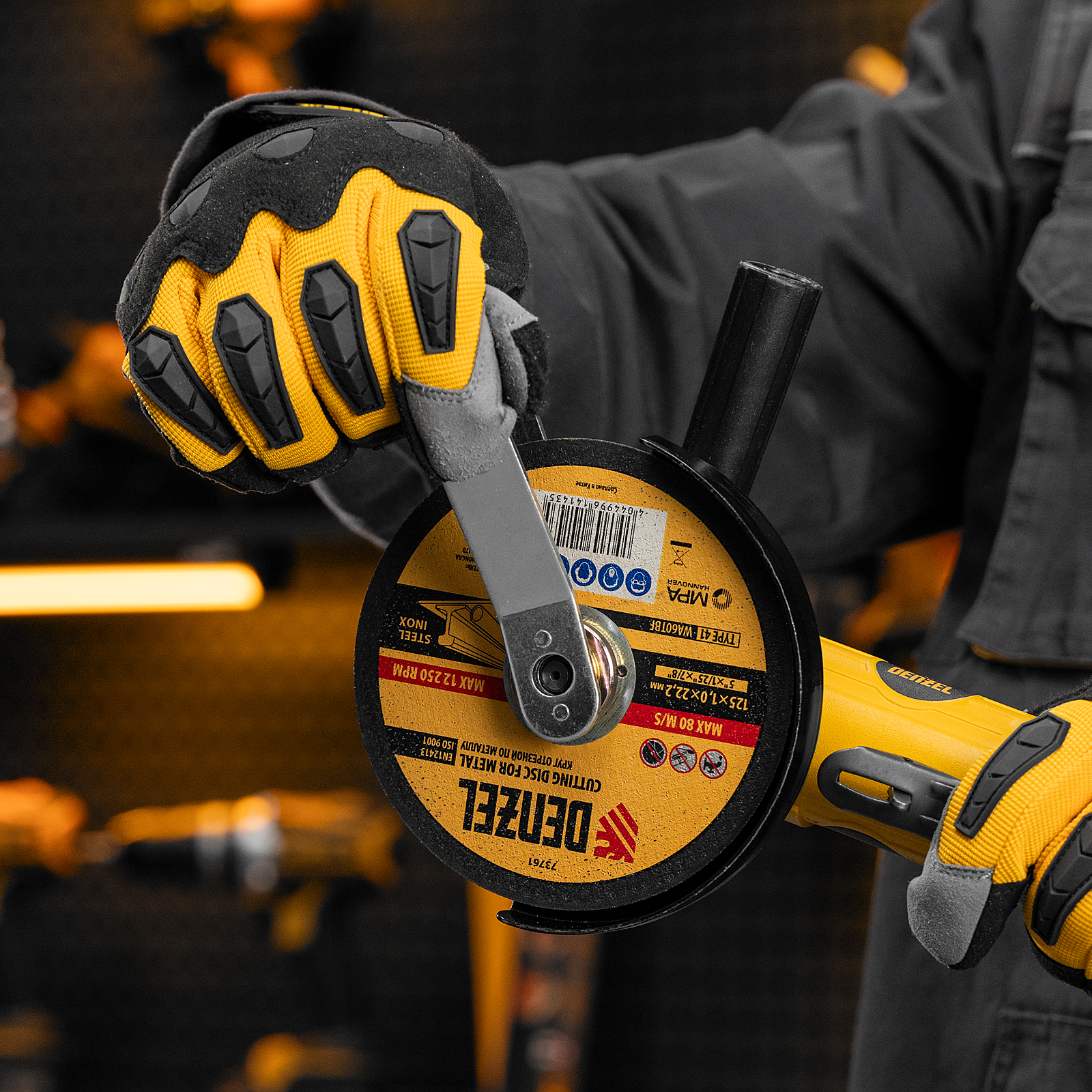 - Высокая эффективность — инструмент справляется с разрезанием материалов толщиной до 35 мм, оптимально подходит для профессионального применения на строительных площадках, в сварочных и арматурных цехах, автосервисах.