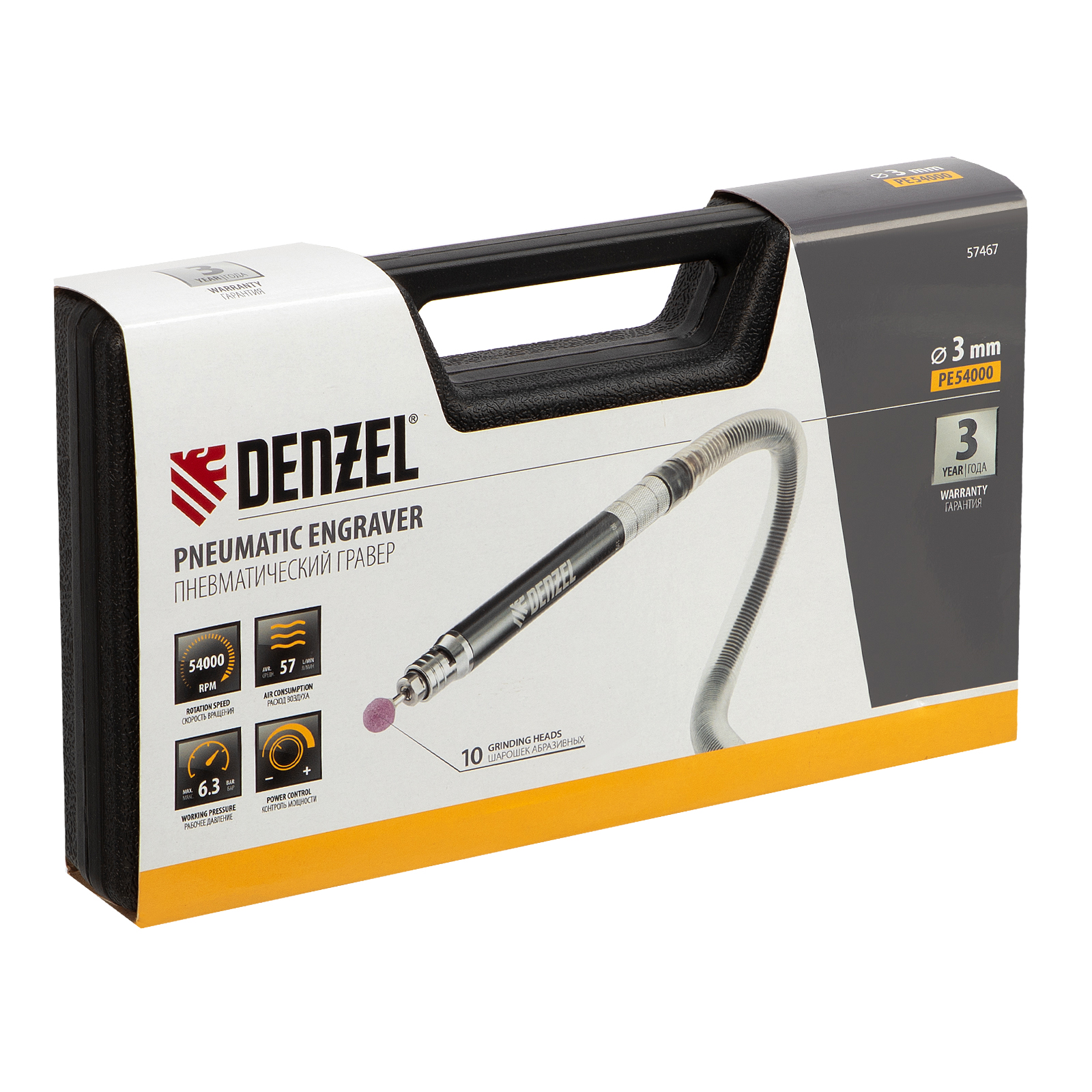 Пневматический гравер PE54000, 54000 об/мин, 3 мм, 57 л/мин Denzel в Уфе