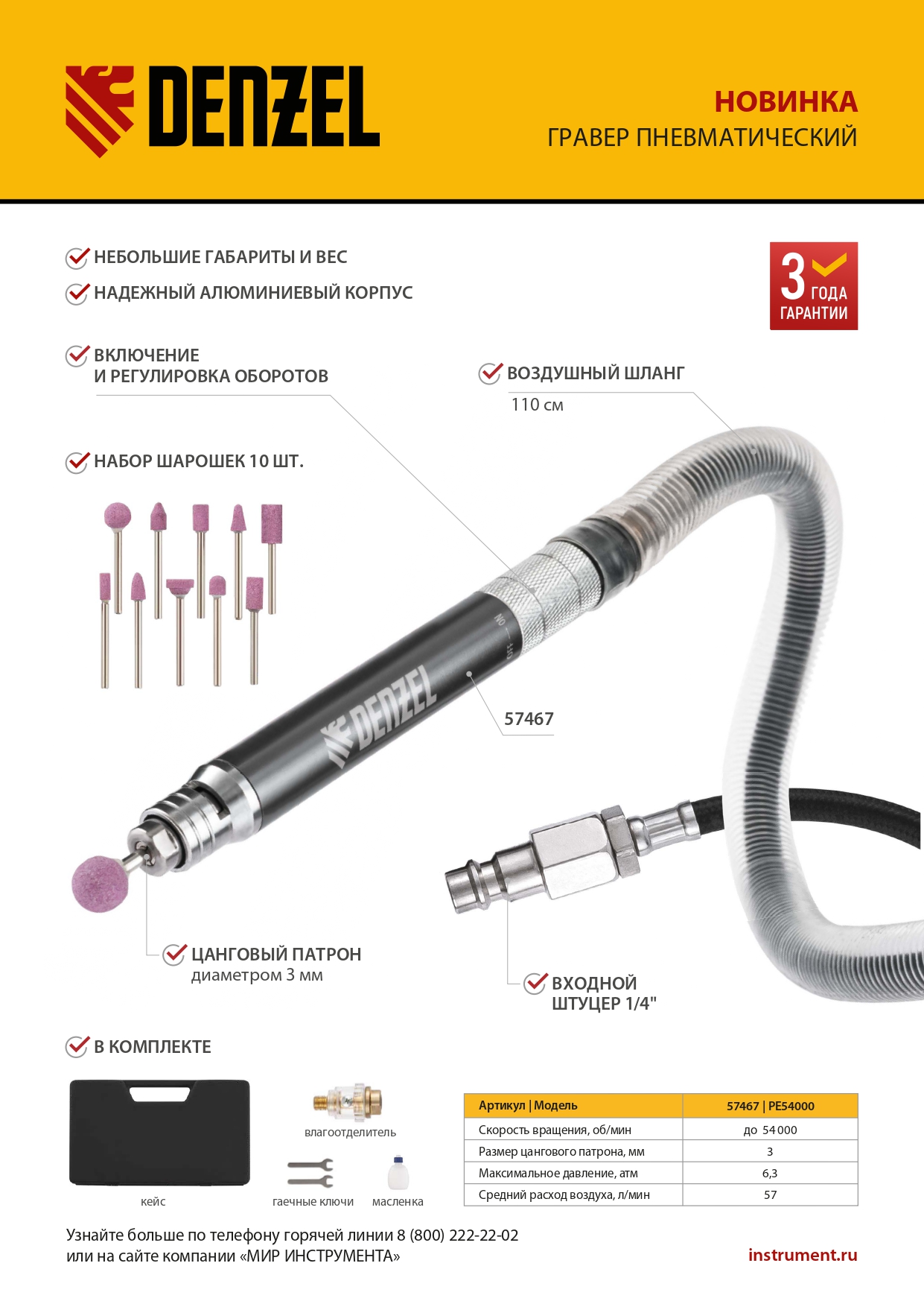 - Долговечность — гравер поставляется с влагоотделителем, предотвращающим образование коррозии.