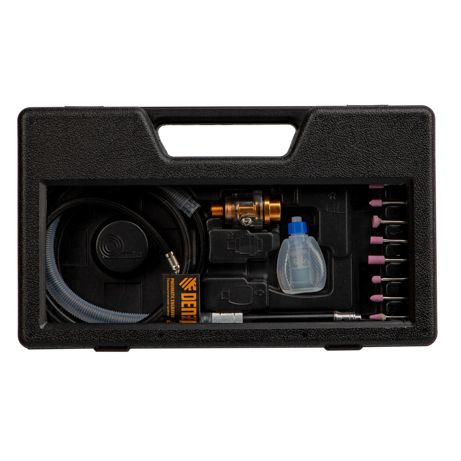 - Прочная упаковка — гравер поставляется в кейсе, удобном для хранения и транспортировки.