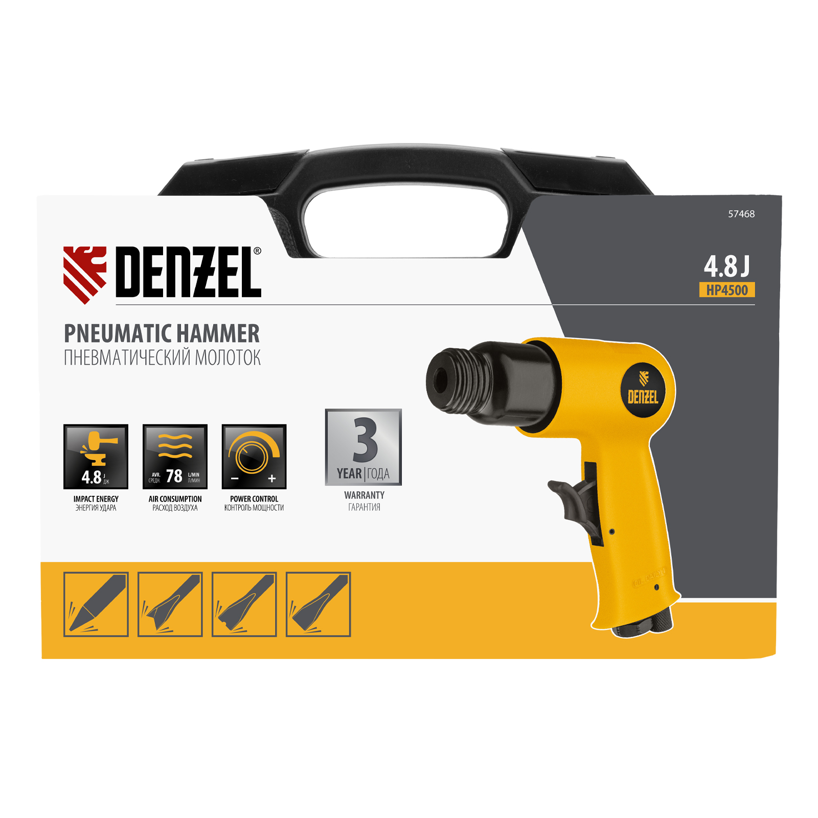 Пневматический молоток НР4500 + набор насадок, 113 л/мин, 4500 уд/мин Denzel в Уфе