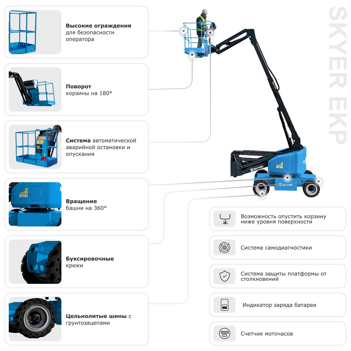 Подъемник самоходный электрический коленчатый SKYER EKP1623 в Уфе