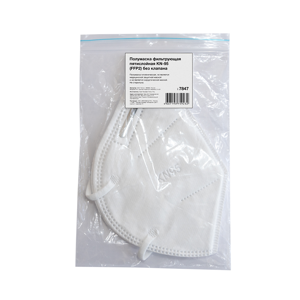 Полумаска фильтрующая пятислойная KN-95 без клапана в Уфе
