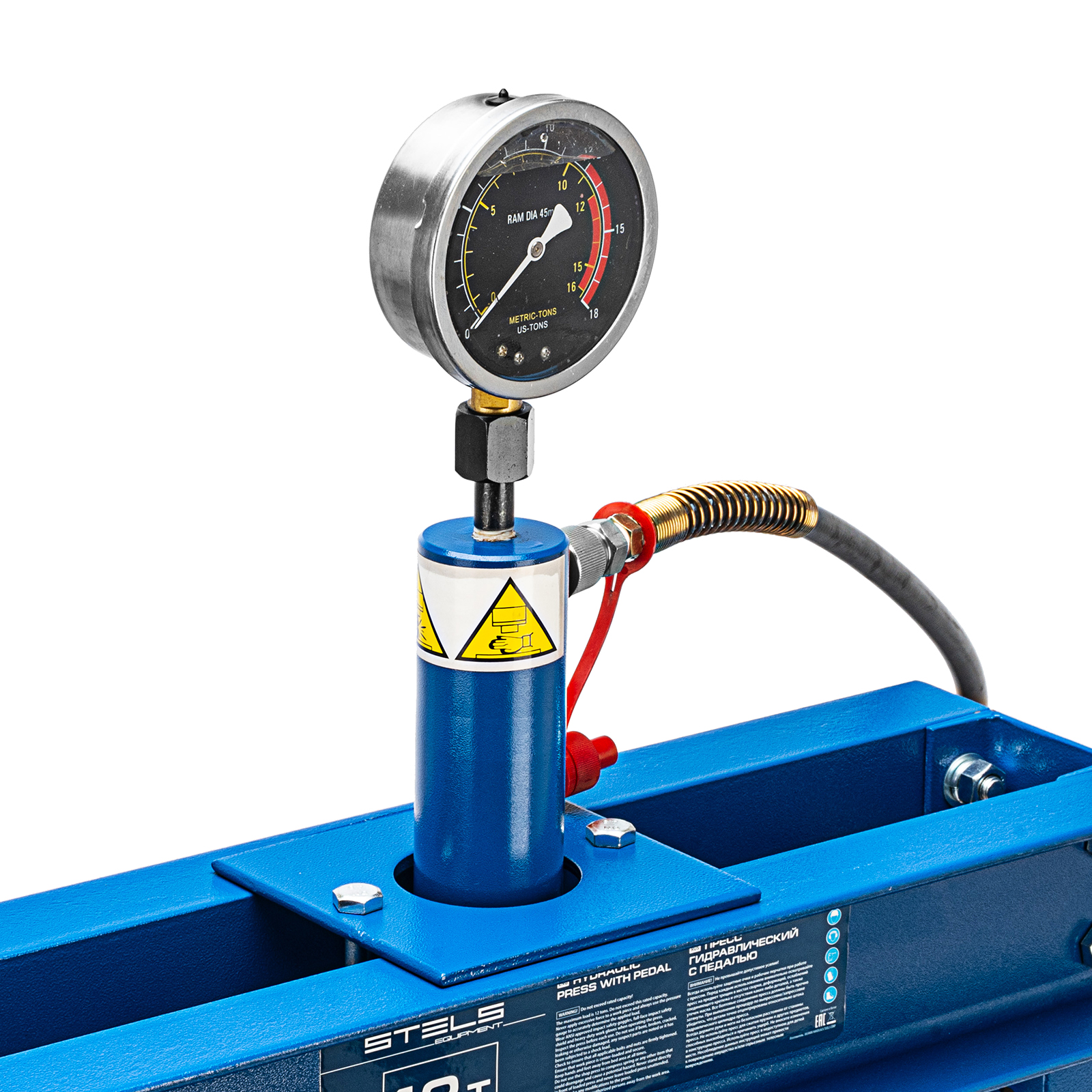 Пресс гидравлический с манометром и педалью, 12 т (комплект из 2 частей) Stels в Уфе