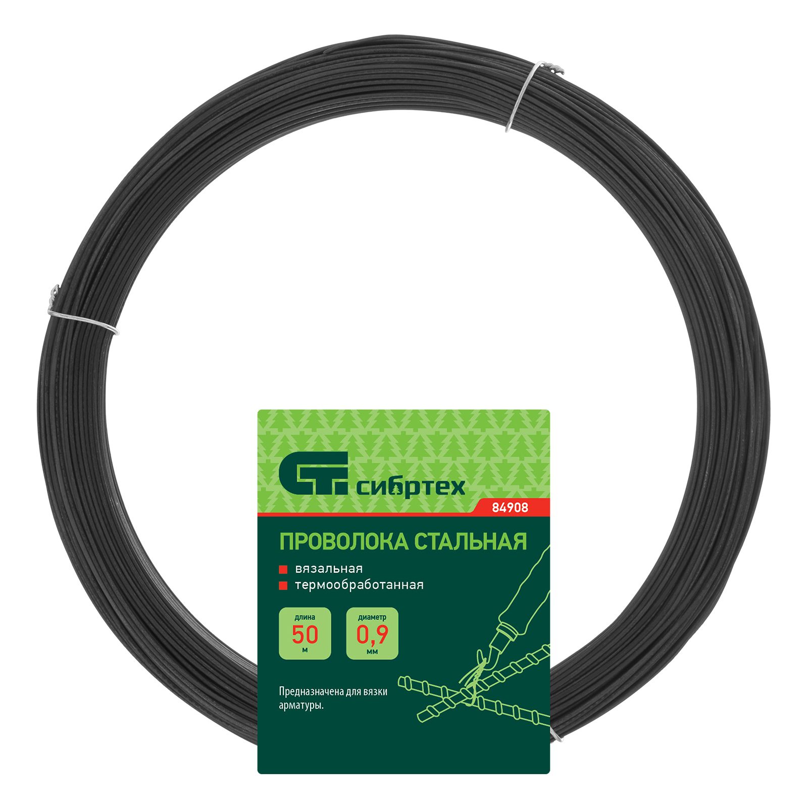 Проволока стальная 50 м, вязальная, термообработанная 0.9 мм Сибртех в Уфе