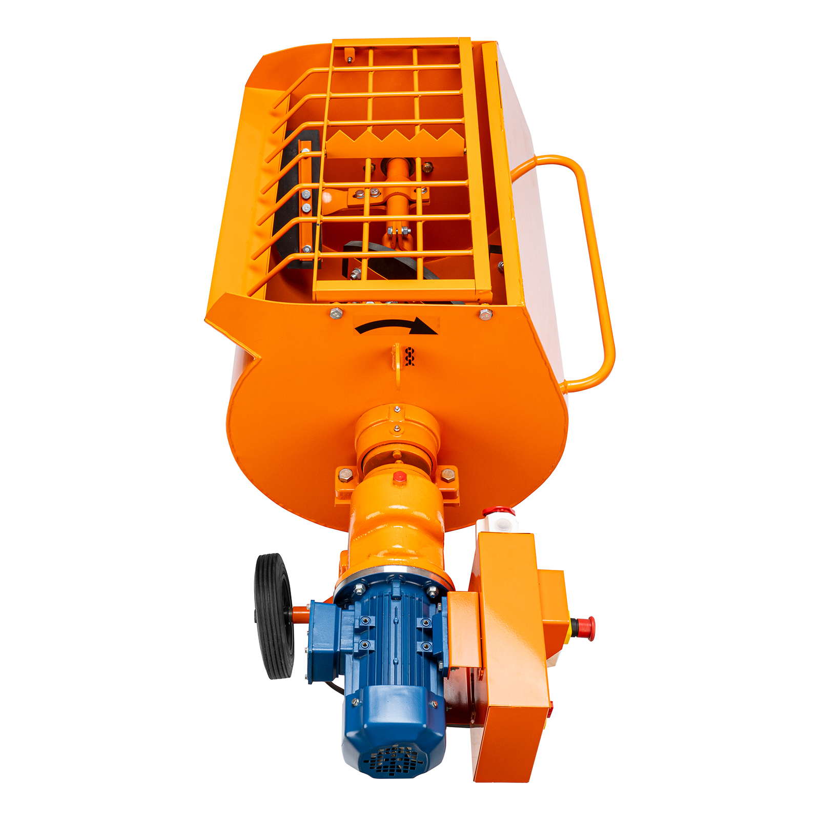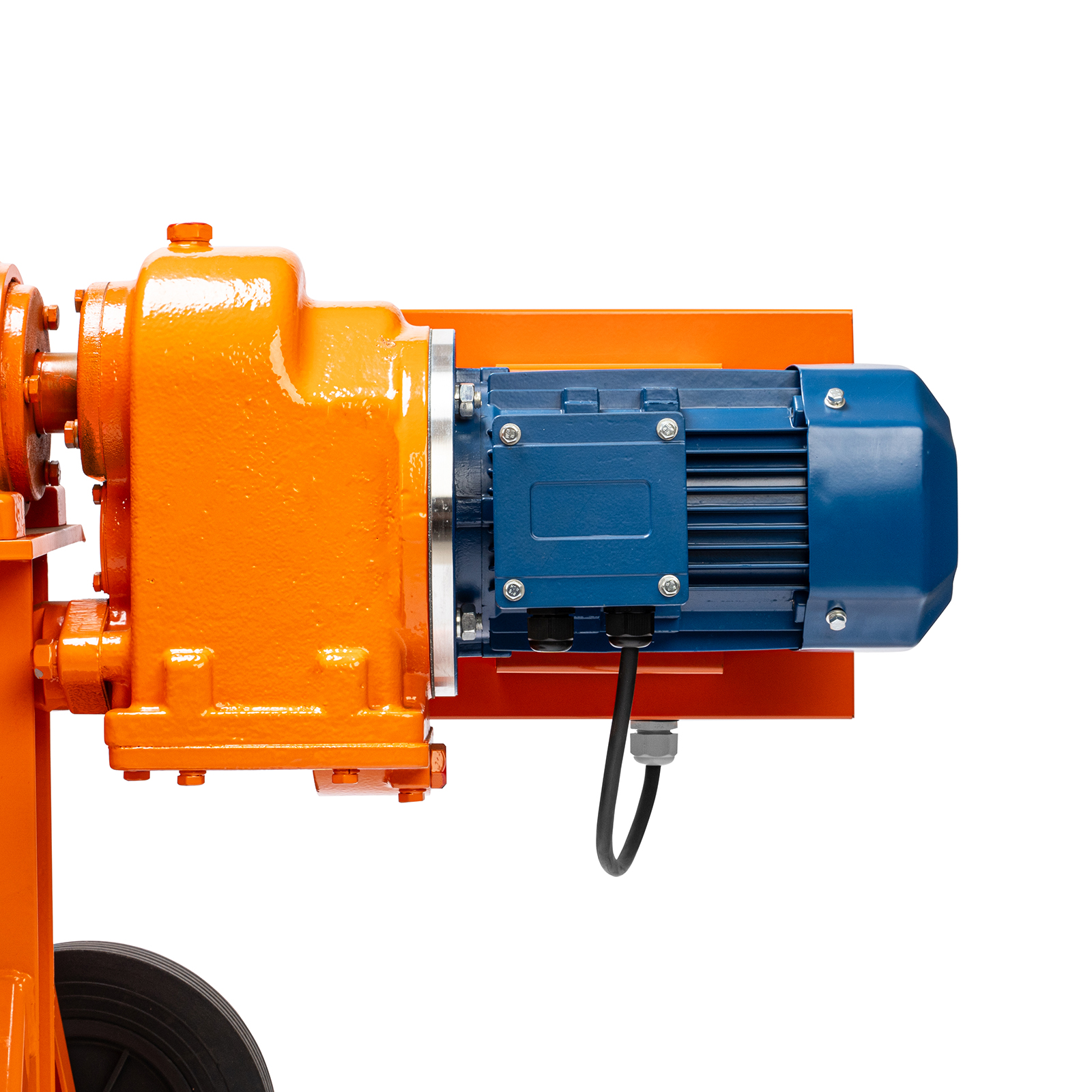 - Продуманная конструкция — двигатель отделен от блока смесителя, что позволяет минимизировать воздействие вибраций на основные элементы и продлить срок службы растворосмесителя.