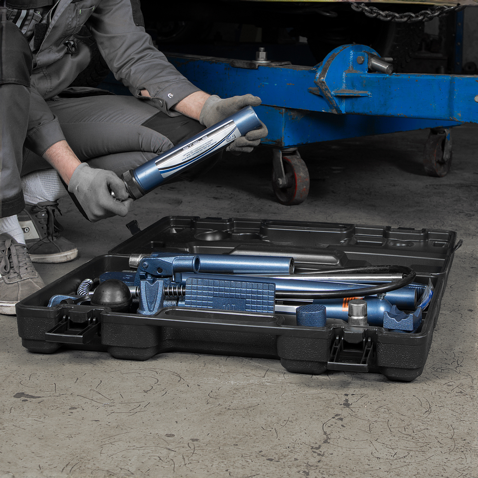 Гидравлическая растяжка Stels 51355, рассчитанная на усилие до 10 т, — компактный набор в пластиковом кейсе, включающий 17 предметов: цилиндр, гидронасос, адаптер, удлинители, основание и 7 сменных насадок. Его используют для проведения кузовного ремонта и рихтовки металлических конструкций. Растяжка удобна для восстановления геометрии проемов автомобильных дверей и окон, а также значительных по площади участков кузова. Комплект пригодится в автосервисе, а также для работы в гараже.