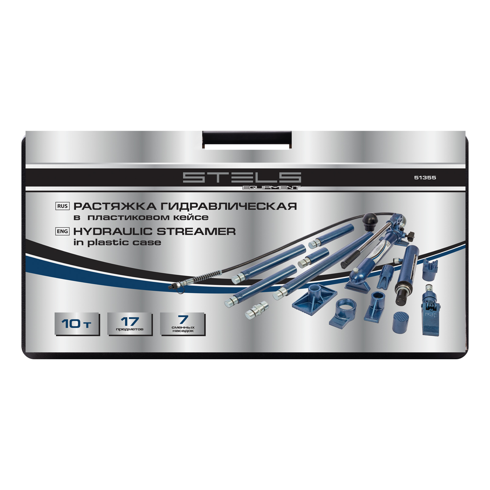 Растяжка гидравлическая, 10 т, набор из 17 предметов, 7 сменных насадок, в пластиковом кейсе Stels в Уфе