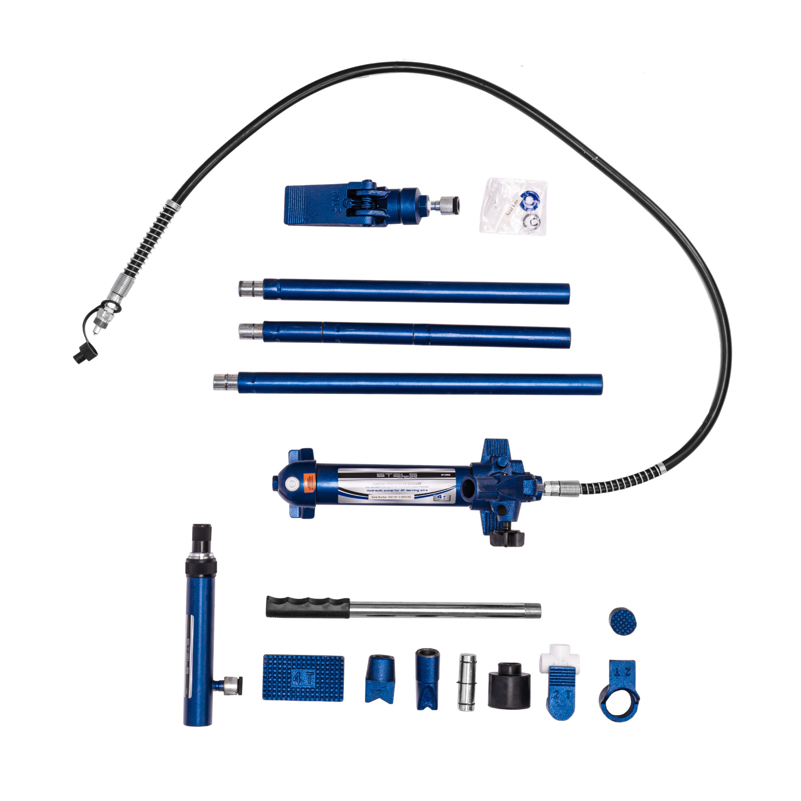 Гидравлическая растяжка Stels 51352 в наборе из 17 предметов, включающем гидронасос, цилиндр, удлинители, адаптер, основание, 7 сменных насадок, и упакованном в металлический кейс, рассчитана на усилие до 4 т и используется для восстановления деформированных металлоконструкций, преимущественно элементов автомобильного кузова. Будет полезна в автомастерской, а также для проведения самостоятельного кузовного ремонта.