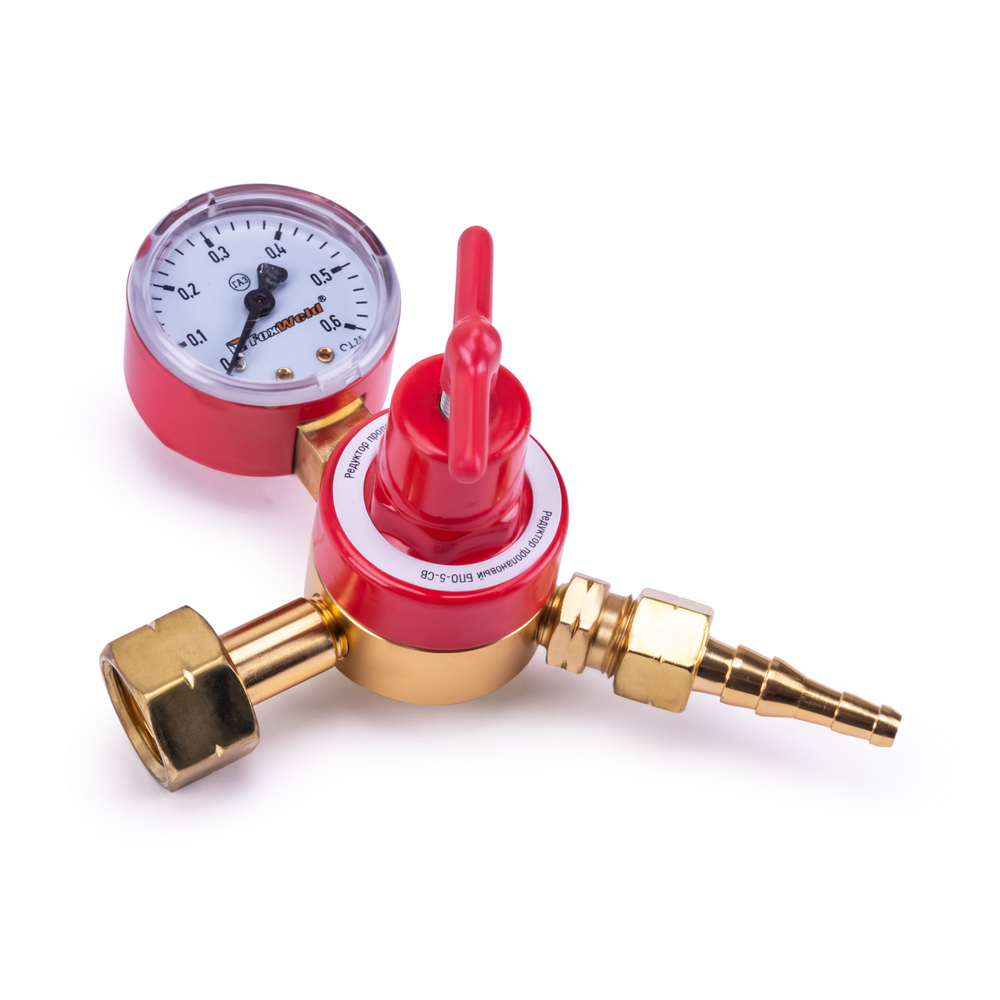 Газовый редуктор БПО-5-СВ производства Foxweld используется для понижения, регулирования и контроля давления газа, выходящего из баллона. Модель предназначена для работы с химическим соединением пропана. Вентиль регулирует подачу газа до рабочего давления, а с помощью манометра осуществляется контроль выходного давления. Газовый редуктор применяется в газосварочных работах, поддерживает заданный расход газа при резке и пайке металлов.ВНЕШНИЕ РЕГУЛИРОВКИ: Газовый редуктор имеет вентиль регулировки давления. Для качественного выполнения газосварочных работ необходимо контролировать давление, поступающее из баллона. Вентиль снижает или понижает поступающее на выходе давление - можно настроить необходимое рабочее давление на выходе и проконтролировать процесс с помощью манометров.ВСТРОЕННЫЙ МАНОМЕТР: Газовый редуктор с манометром позволяет контролировать давление. Манометр показывает пониженное рабочее давление на выходе, делая газосварочный процесс стабильным.БЕЗОПАСНОСТЬ РАБОЧЕГО ПРОЦЕССА: Газовый редуктор выполнен из сплава латуни. Данный вид сплава предотвращает появление искр при закреплении редуктора на газовом баллоне. Модель надежно крепится на баллон с помощью накидной гайки, и корпус изделия не пропускает газ во внешнюю среду. Процесс работы с газовым оборудованием становится проще и безопаснее.СТАБИЛИЗАЦИЯ СВАРОЧНОГО ПРОЦЕССА: Использование газового редуктора в газосварочных работах стабилизирует процесс подачи газа. Полный контроль над уровнем давления на входе позволяет отслеживать уровень заполненности баллона, стабильное давление подачи газа на выходе поддерживает рабочее давление при газосварке.ПРЕИМУЩЕСТВА:Удобство в использованииРегулировка подачи газаКонтроль давления