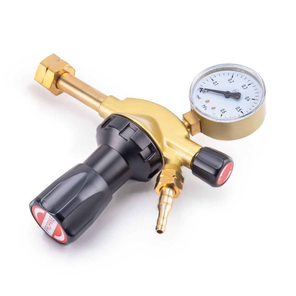 Пропановый редуктор GRE-2000 предназначен для понижения давления газа на выходе из баллона и плавной регулировки подачи газа на выходе в рабочей камере. Газовый редуктор используется для работы с пропаном при газосварке, резке, пайке и газовом напылении. Корпус газового редуктора выполнен из латуни, что обеспечивает надежность при выполнении работ. Конструкция пропанового редуктора включает в себя манометр низкого давления на выходе и регулятор тонкой подачи газа. БЕЗОПАСНОСТЬ РАБОЧЕГО ПРОЦЕССА: Газовый редуктор выполнен из сплава латуни. Данный вид сплава предотвращает появление искр при закреплении редуктора на газовом баллоне. Модель надежно крепится на баллон с помощью накидной гайки, и корпус изделия не пропускает газ во внешнюю среду. Процесс работы с газовым оборудованием становится проще и безопаснее.СТАБИЛИЗАЦИЯ СВАРОЧНОГО ПРОЦЕССА: Использование газового редуктора в газосварочных работах стабилизирует процесс подачи газа. Полный контроль над уровнем давления на входе позволяет отслеживать уровень заполненности баллона, стабильное давление подачи газа на выходе поддерживает рабочее давление при газосварке.ВНЕШНИЕ РЕГУЛИРОВКИ: Газовый редуктор имеет вентиль регулировки давления. Для качественного выполнения газосварочных работ необходимо контролировать давление, поступающее из баллона. Вентиль снижает или понижает поступающее на выходе давление - можно настроить необходимое рабочее давление на выходе и проконтролировать процесс с помощью манометров.ВСТРОЕННЫЙ МАНОМЕТР: Газовый редуктор с манометром позволяет контролировать давление. Манометр показывает пониженное рабочее давление на выходе, делая газосварочный процесс стабильным.ПРЕИМУЩЕСТВА:Удобство в использованииРегулировка подачи газаКонтроль давленияКОМПЛЕКТАЦИЯ: Редуктор в собранном виде – 1 шт.; Инструкция – 1 шт.*Производитель оставляет за собой право вносить изменения в комплектацию оборудования без предварительного уведомления покупателя.