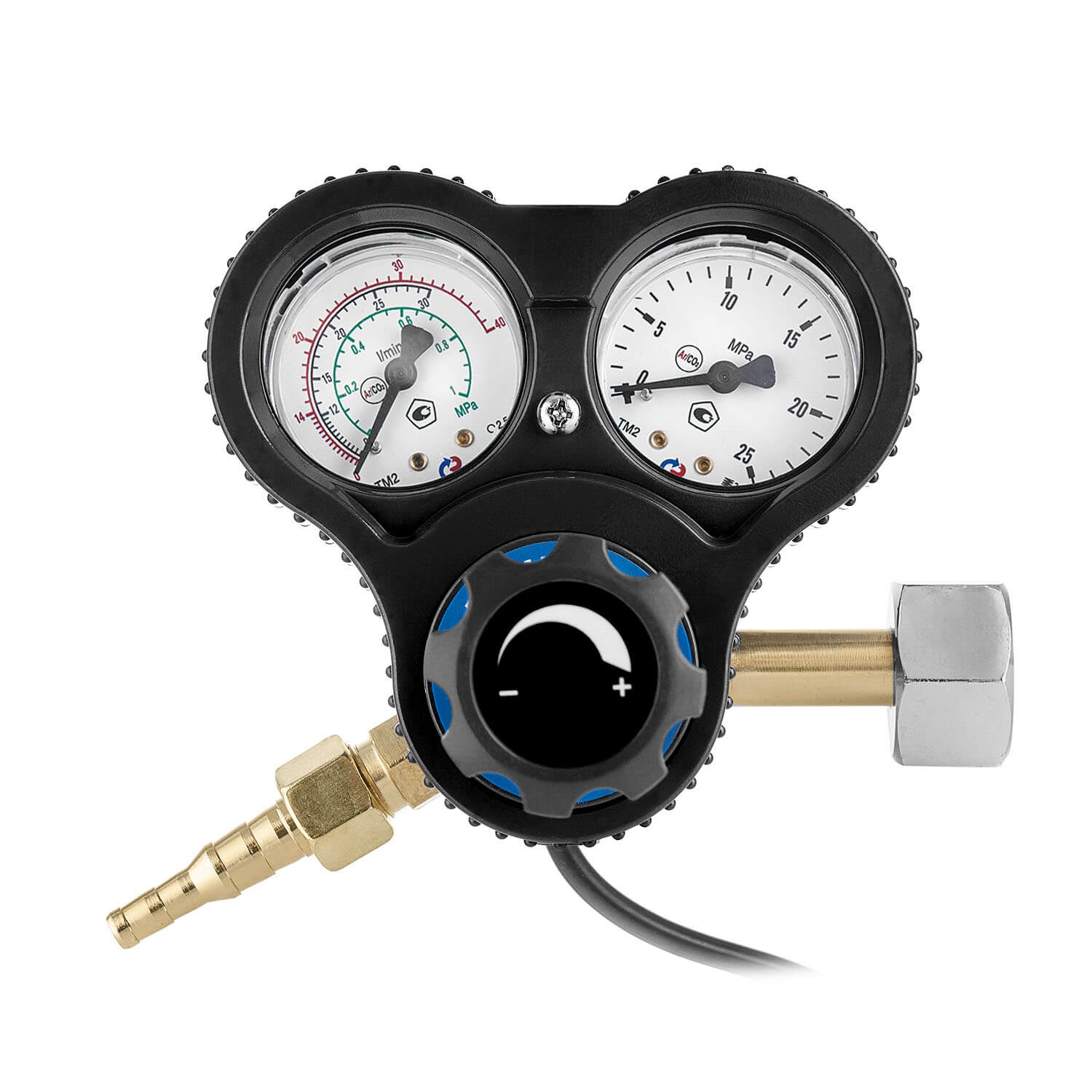 Универсальный регулятор У-30/АР-40-П-01 (36V) серии PROTEC с манометрами для углекислоты и аргона предназначен для понижения давления газа и автоматического поддержания постоянным заданного расхода при питании постов и установок в среде защитных газов. Срабатывание предохранительного клапана происходит при давлении в 0,6 МПа.