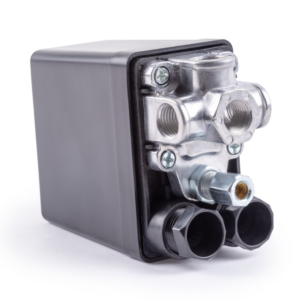 Реле давления одноступенчатое AERO 1/4" служит для автоматического поддержания давления в ресивере компрессора в диапазоне 8-10 бар. Реле имеет 4 входа-выхода с внутренней резьбой 1/4″. Реле давления предназначено для контроля перепадов давления в пневмосистеме компрессора. Их главным элементом является пружина, которая изменяет свою жесткость в зависимости от значения этого параметра. Реле давления или прессостаты защищают компрессор от преждевременного износа отключая его электродвигатель при достижении максимального давления воздуха в системе и повторно включая его при падении давления ниже заданного значения. Принцип работы реле давления воздуха для компрессора прост и основывается на зависимости силы сжатия пружины от давления поступающего газа, который далее попадает на мембрану. При изменении давления пружина приходит в действие, а по достижении наибольшего показателя давления цепь электропитания разъединяется. При понижении давления газа пружина замыкает электрическую цепь, компрессор включается и начинает подавать газ в систему. Значения давления, при которых реле включается и выключается, устанавливаются производителем оборудования.
