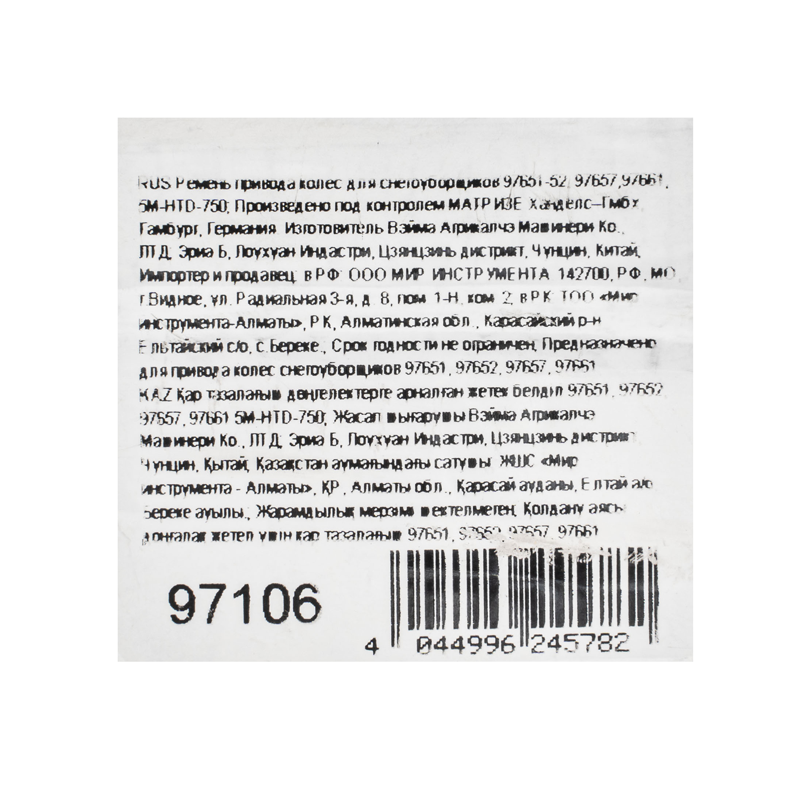 Ремень привода колес для снегоуборщиков 97651-52, 97657,97661, 5M-HTD-750 в Уфе