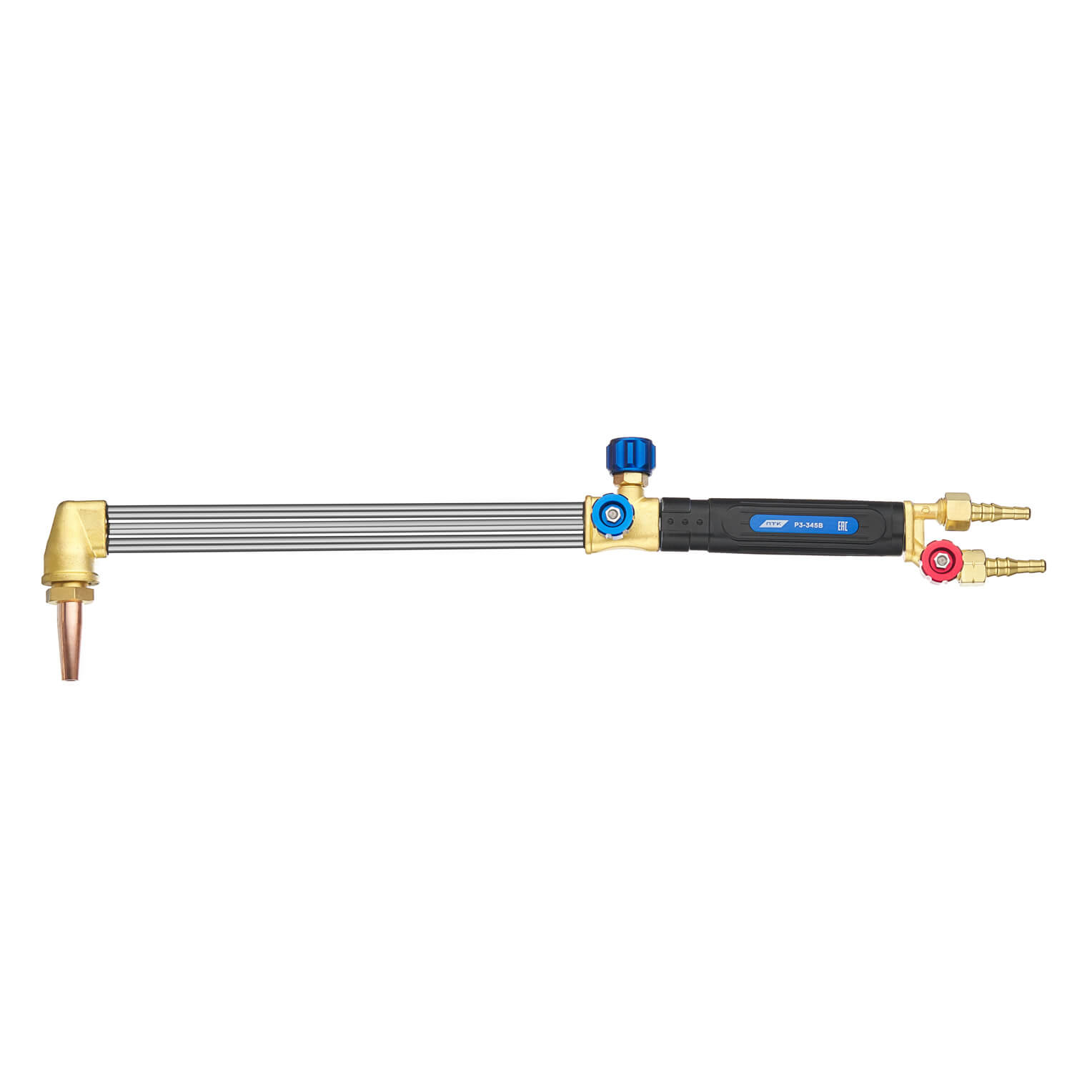 Универсальный резак Р3-345В внутрисоплового смешения газов предназначен для ручной кислородной резки листового и сортового металлопроката из низкоуглеродистых сталей толщиной до 300 мм. Резак обладает повышенной надежностью конструкции, которая достигается за счет штампованных латунных элементов резака.