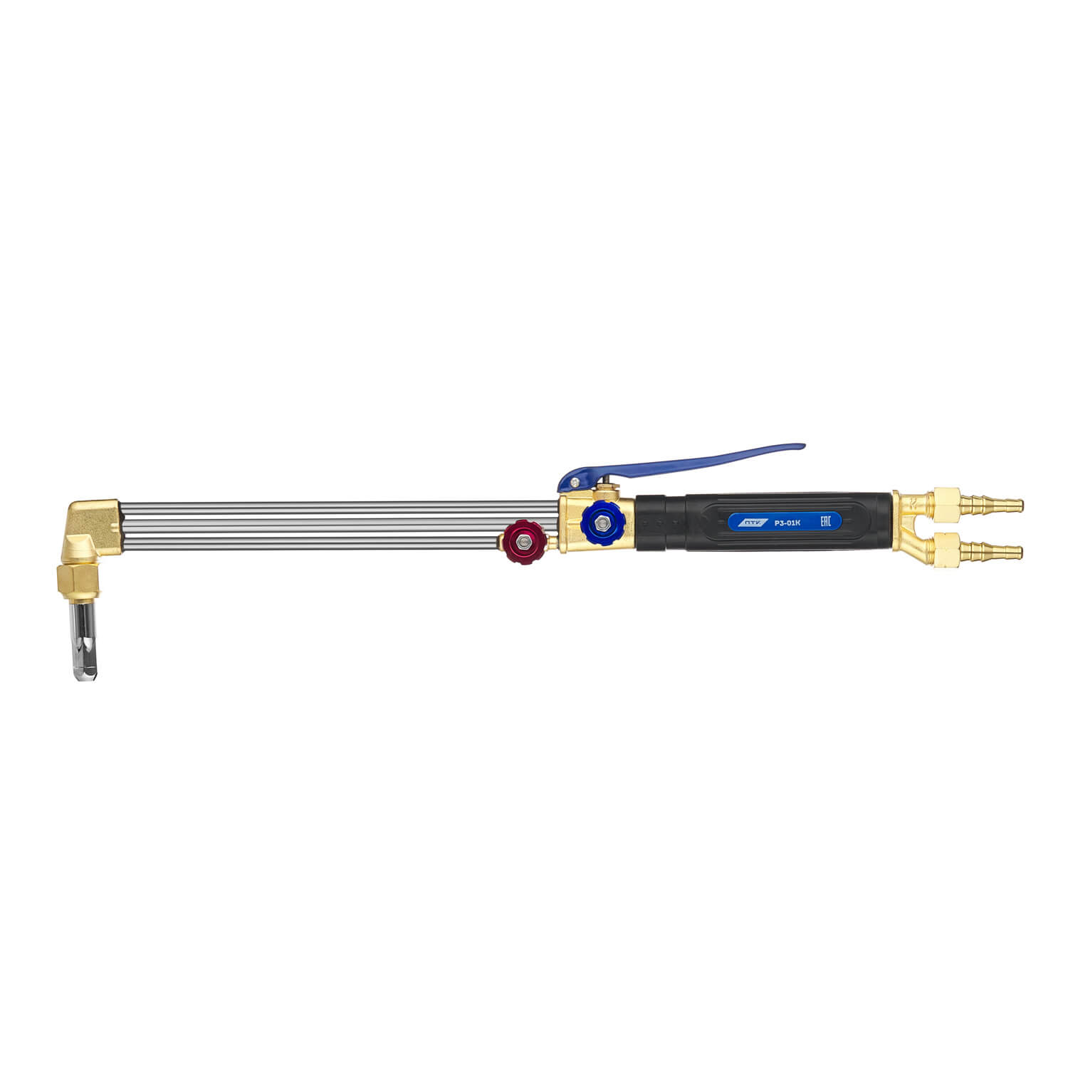 Отличительная особенность резака Р3-01К – клапан кислорода режущего (КР), который располагается сверху, что облегчает эксплуатацию резака.