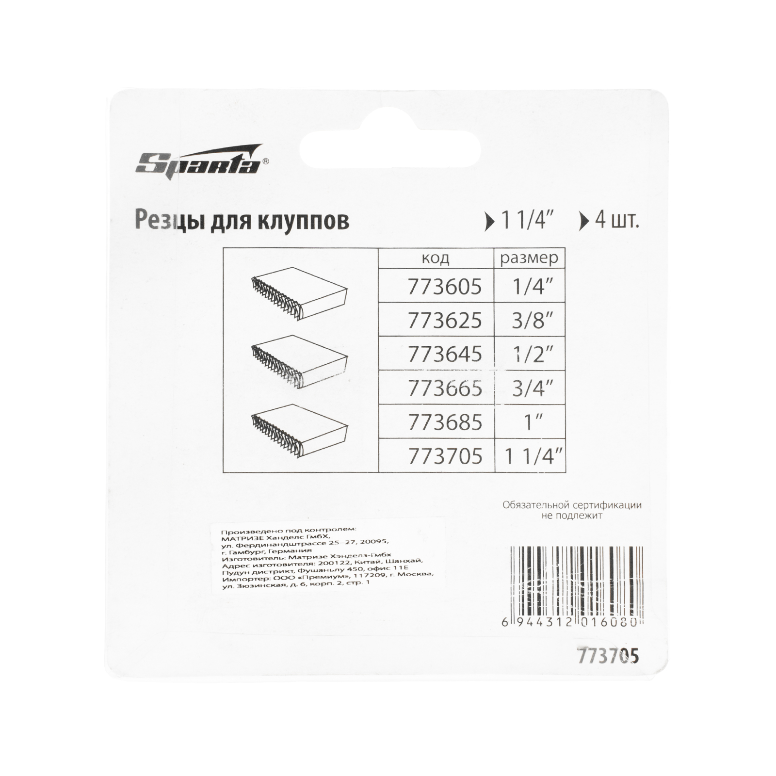 Резцы для клуппов Sparta 773705, 4 шт. в упаковке, — сменные режущие элементы для нарезания наружной правой резьбы диаметром 1 1/4" на трубах. Применяются для прокладки трубопроводов различного назначения.
