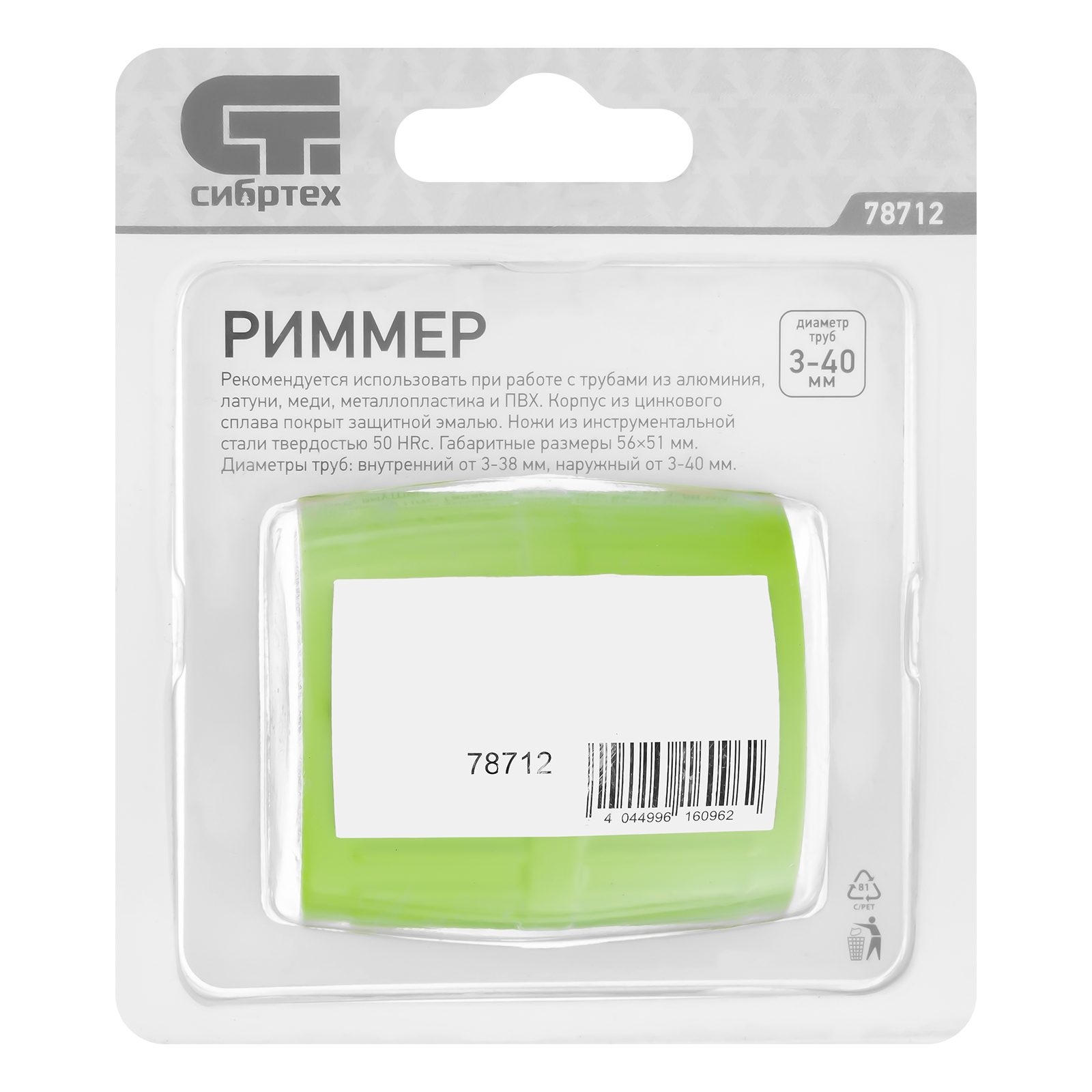Риммер Сибртех 78712 — устройство для снятия внешней и внутренней фасок труб. Обеспечивает качественное выполнение работ и повышает надежность соединения. Способен резать трубы из цветных металлов, металлопластика и ПВХ.