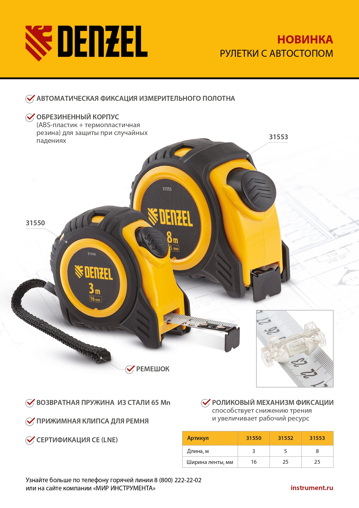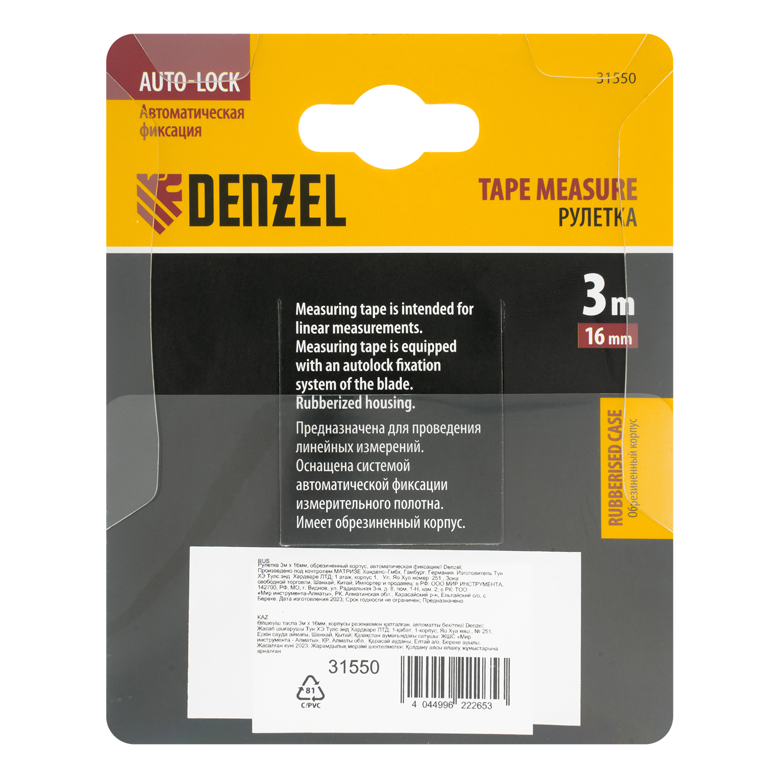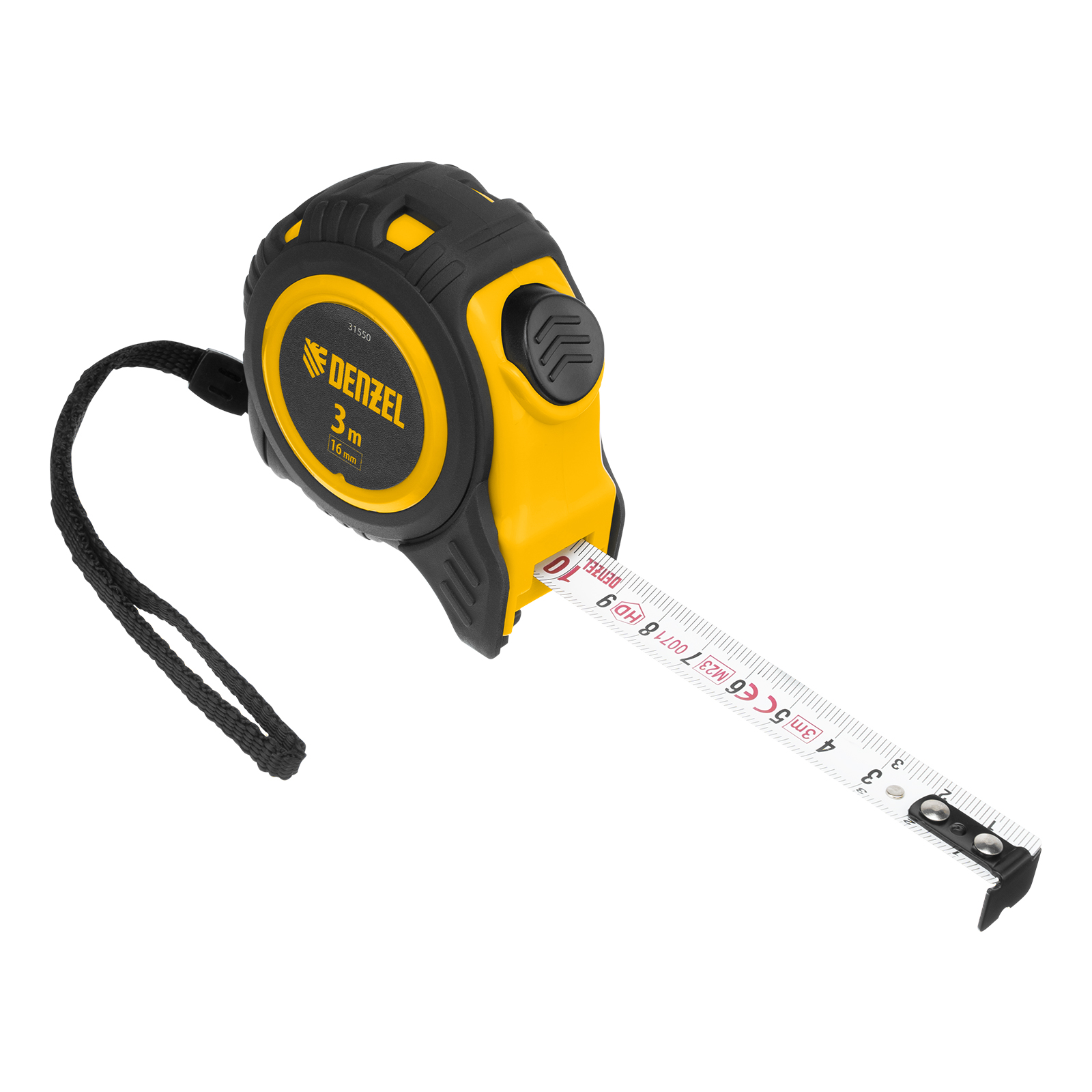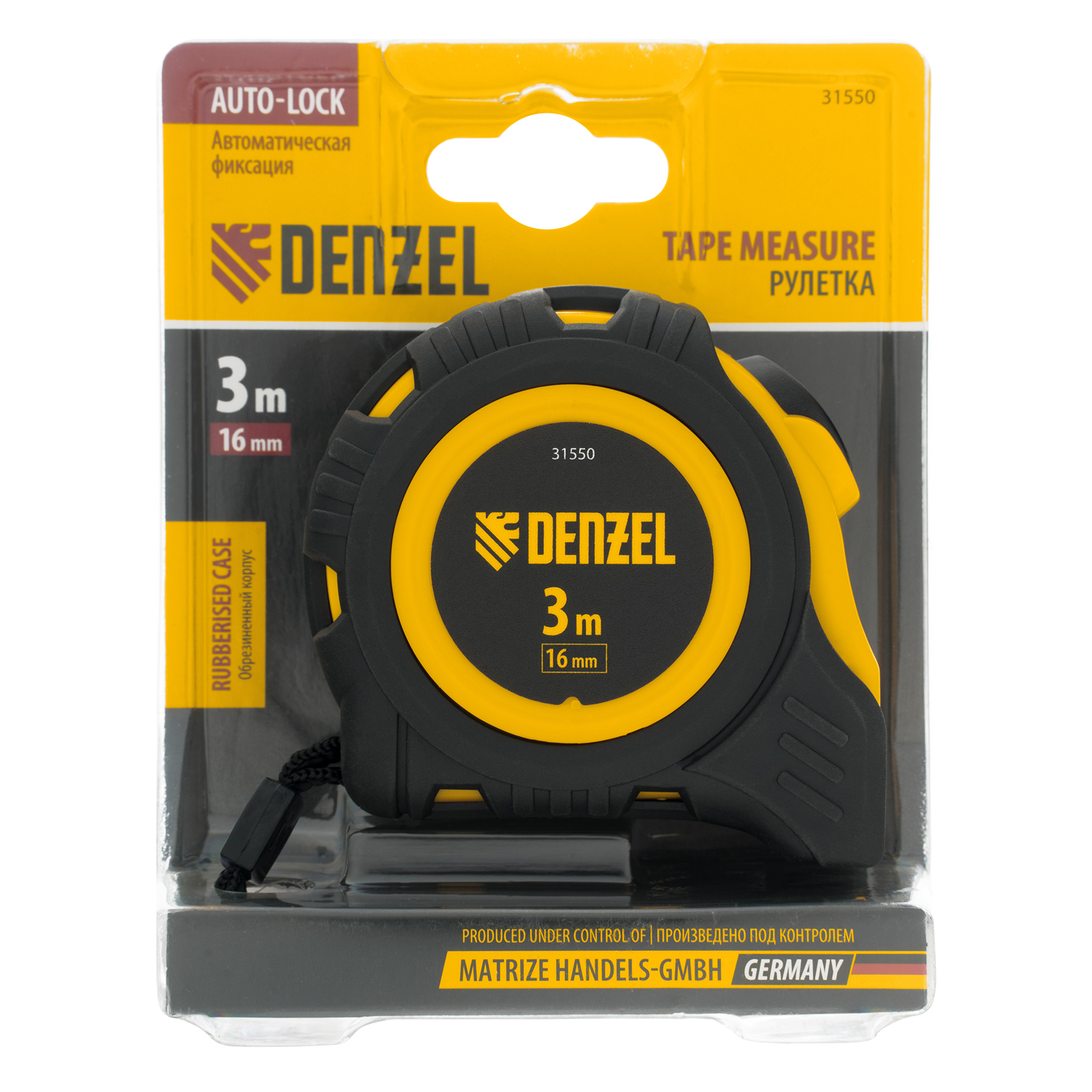 Рулетка 3м х 16мм, обрезиненный корпус, автоматическая фиксация Denzel в Уфе