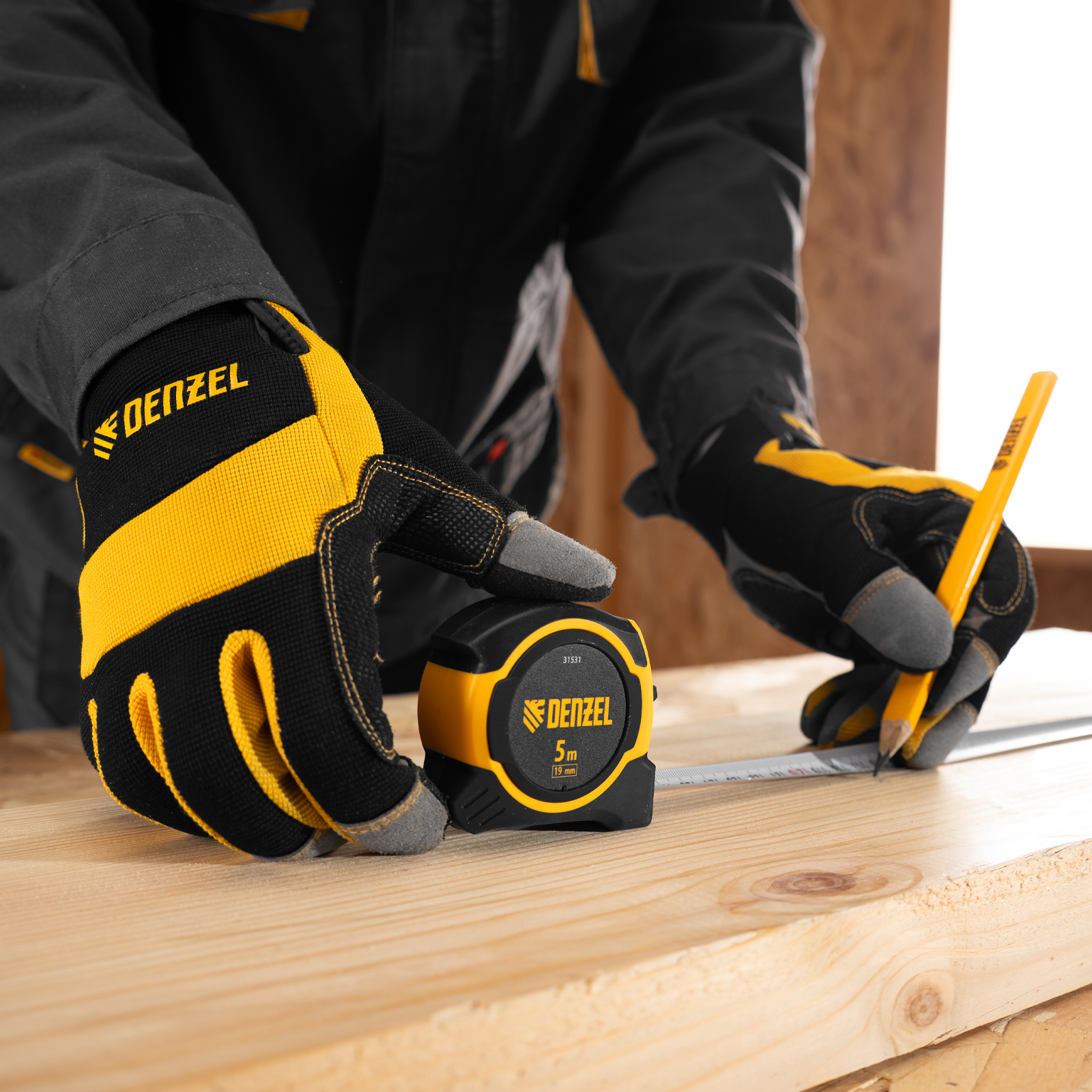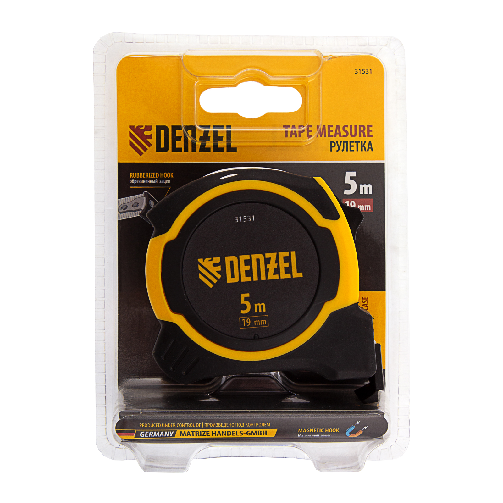 Рулетка 5м х 19мм, двухкомп. корпус, магнитный обрезиненный зацеп Denzel в Уфе
