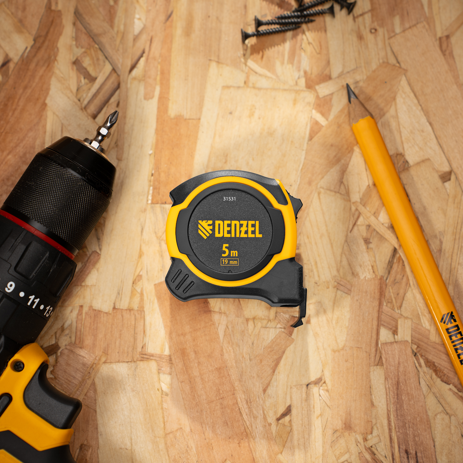 Рулетка Denzel 31531 в двухкомпонентном корпусе, с измерительной лентой шириной 16 мм и магнитным обрезиненным зацепом, позволяет определять размеры предметов и расстояния до 5 м. Рулетка будет полезна при проведении строительных, ремонтных и различных бытовых работ.