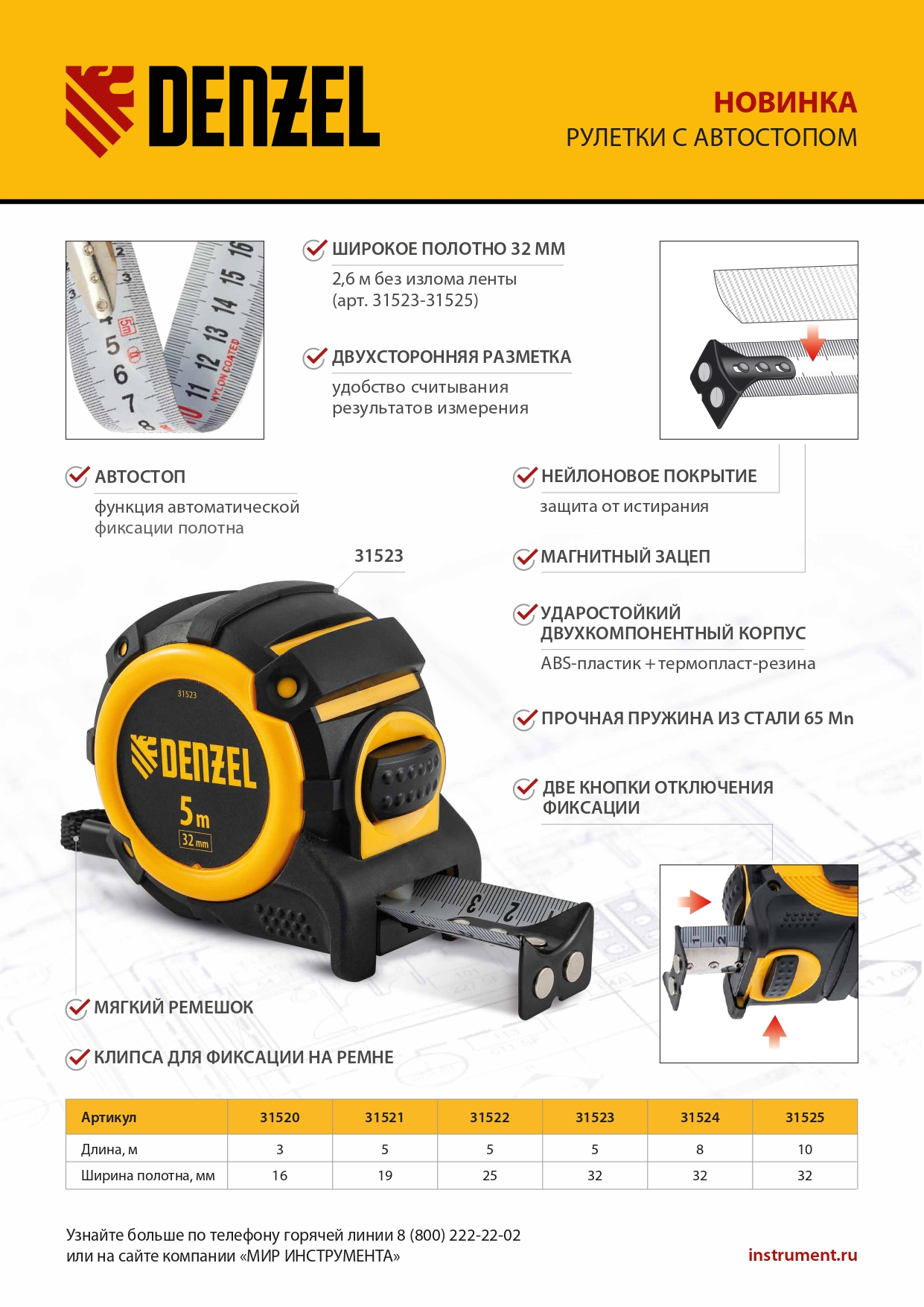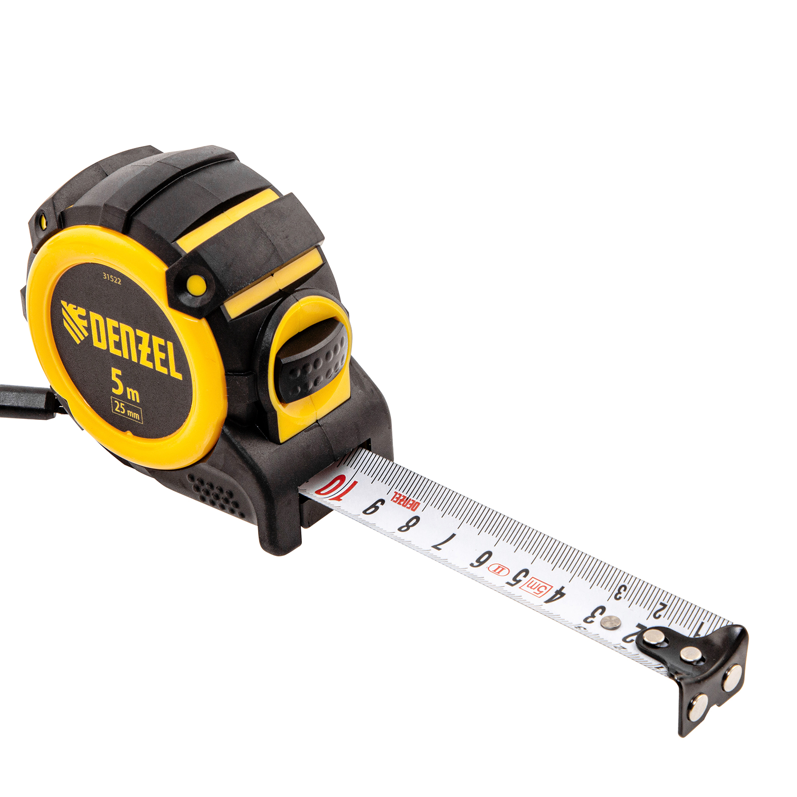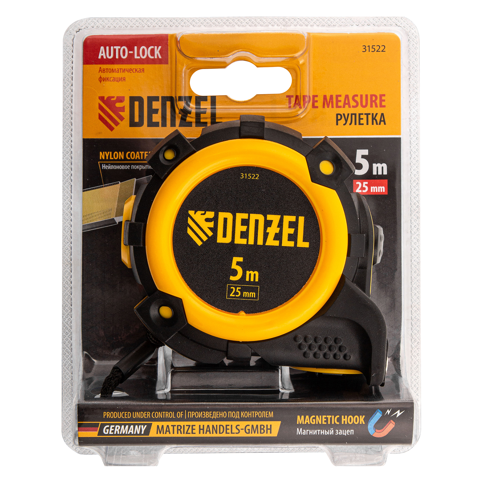Рулетка 5м х 25мм, автоматич. фиксац., нейлон. покрытие, магнит. зацеп, двухстор. разметка Denzel в Уфе