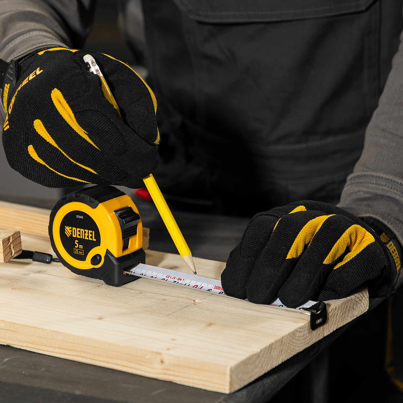 Рулетка Denzel 31543 в двухкомпонентном корпусе, с кнопкой-паузой, с полотном шириной 25 мм и длиной 5 м, используется для измерения расстояний и размеров предметов. Удобна для работы в труднодоступных местах. Стальная лента с эмалевым покрытием и защитной пластиной в месте крепления зацепа рассчитана на долгий срок службы. Рулетка будет полезна во время строительства и ремонта, а также пригодится в быту.