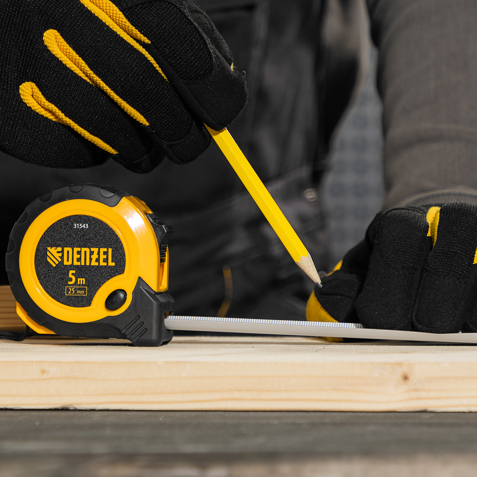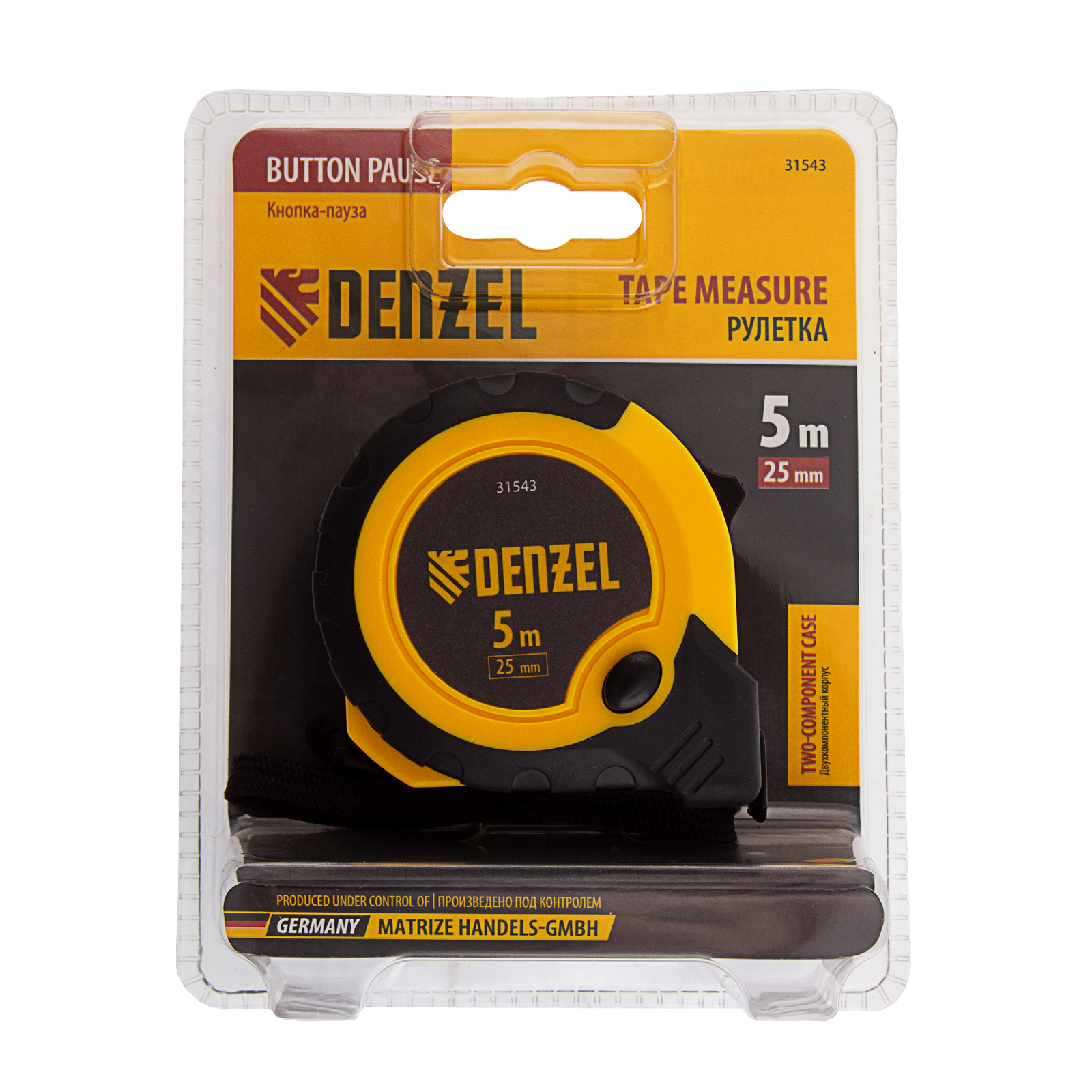 Рулетка 5м х 25мм, двухкомп. корпус, кнопка-пауза Denzel в Уфе