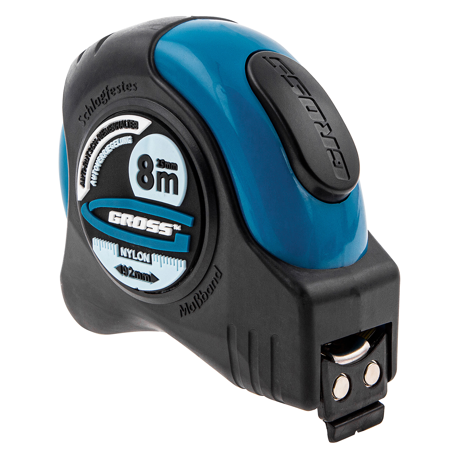 Рулетка "Schlagfest",8 м x 25 мм,магнитный обрезиненный зацеп,двусторонняя шкала,Нейлоновое покрытие,автоматическая фиксация Gross в Уфе