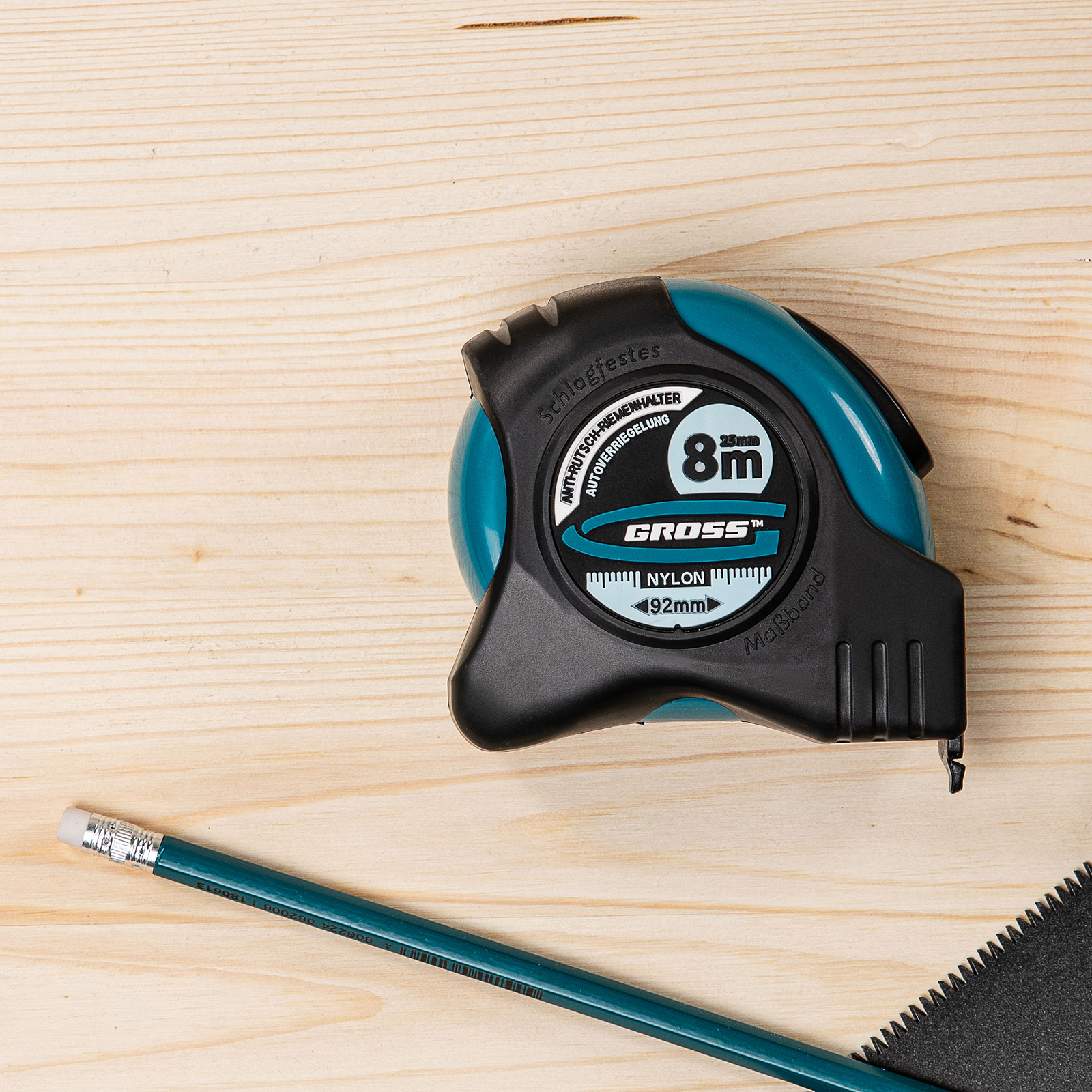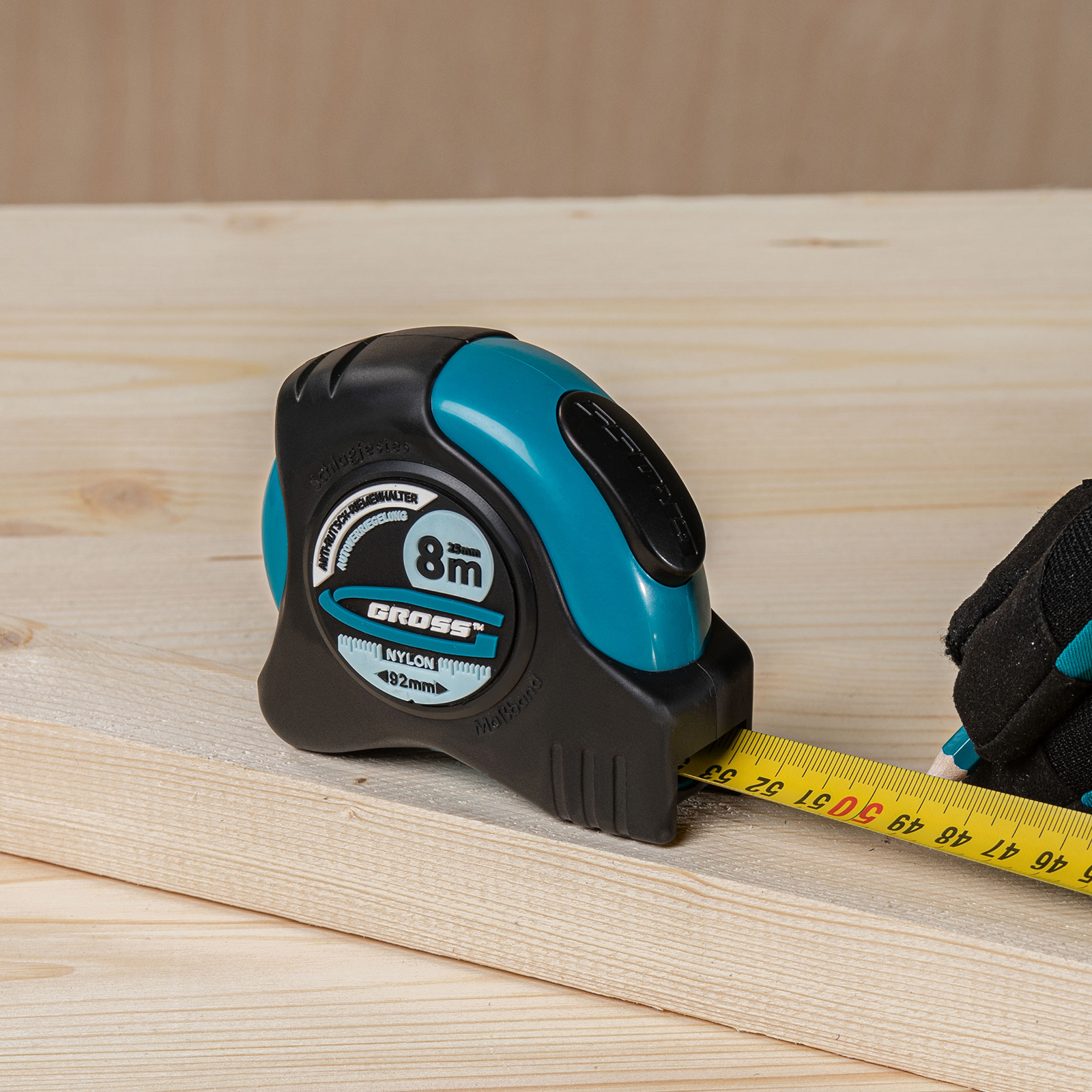 Рулетка Gross «Schlagfest» 31114 с магнитным обрезиненным зацепом, двухсторонней шкалой и функцией автоматической фиксации полотна длиной 8 м и шириной 25 мм, с нейлоновым покрытием, позволяет определять размеры предметов, вычислять площадь помещения и проводить другие измерительные работы. Магнитный обрезиненный зацеп надежно фиксируется на скользких и металлических поверхностях со сложной формой. Широкое упругое полотно облегчает работу в труднодоступных местах. Карманная рулетка пригодится на строительной площадке и в быту.