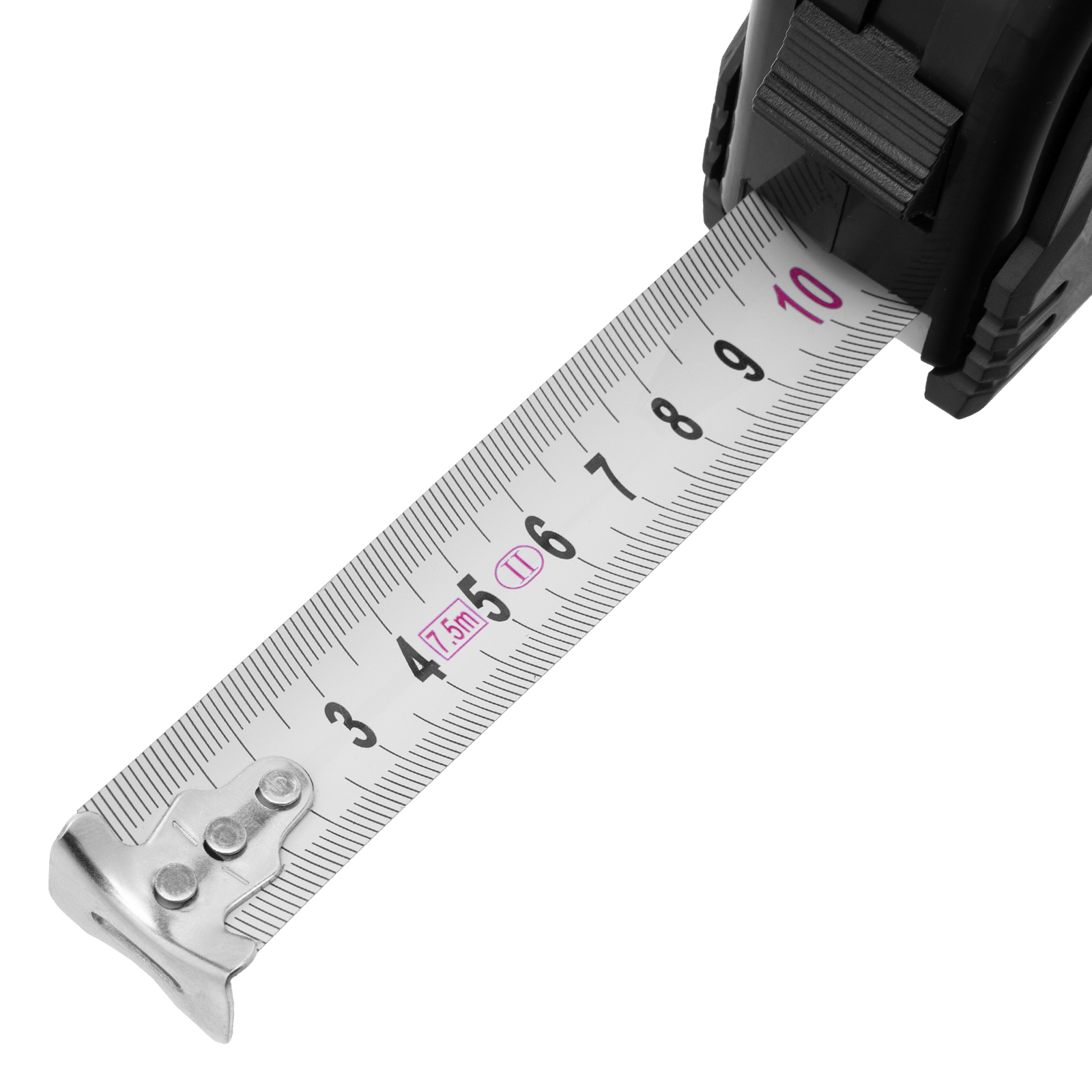 Рулетка Matrix Black 31015 с измерительным полотном длиной 7,5 м и шириной 25 мм, в обрезиненном корпусе, будет полезна как строителю, так и домашнему мастеру. Используется для определения размеров и расстояний, имеет цену деления 1 мм и класс точности 2. Корпус инструмента защищен резиновым кожухом, что уменьшает риск поломки в результате случайного падения или удара. Зацеп надежно закреплен на ленте тремя заклепками, поэтому он не отвалится даже после длительного использования.