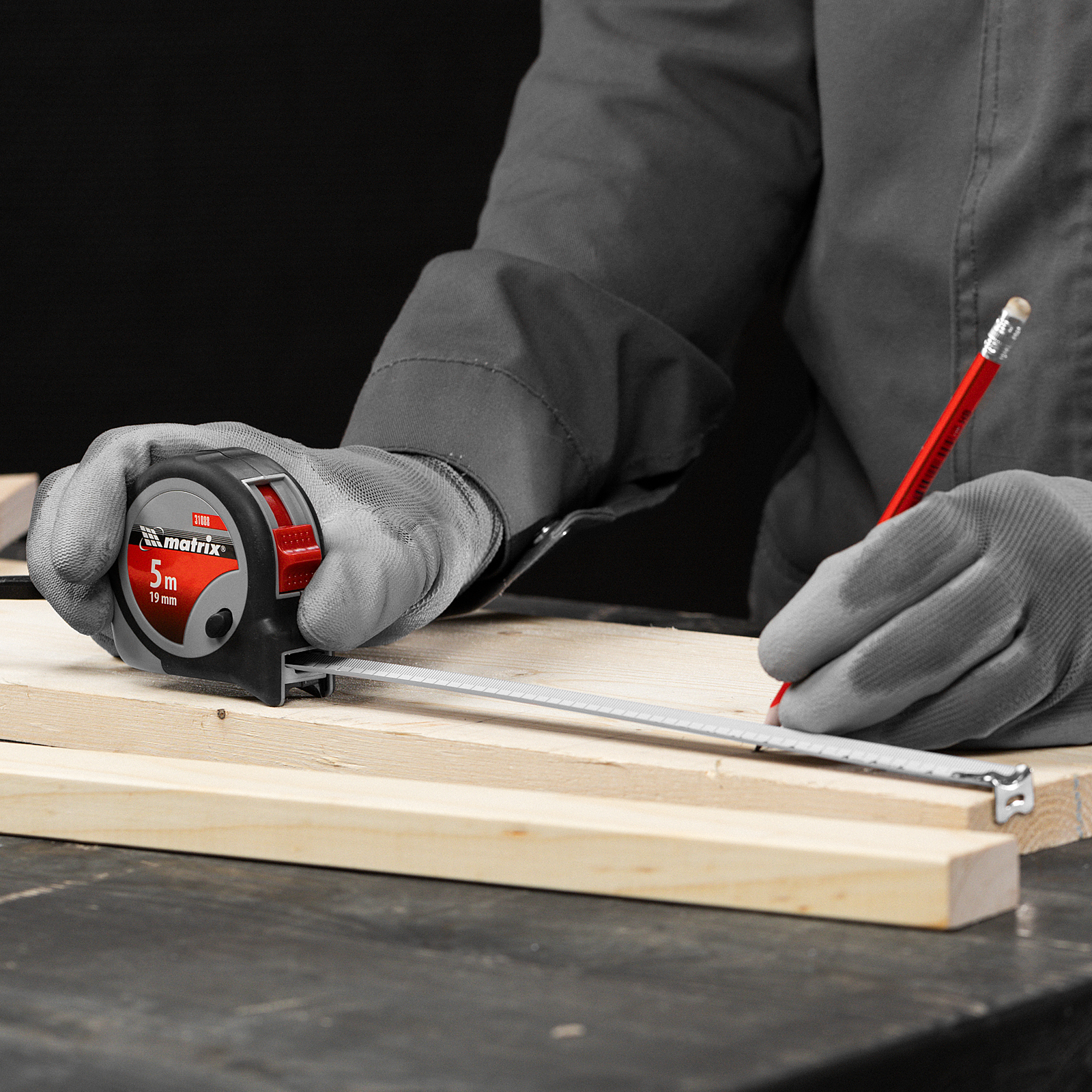 Рулетка Continuous fixation,5 м х 19 мм,двухкомпонентный корпус,плавная фиксация Matrix в Уфе