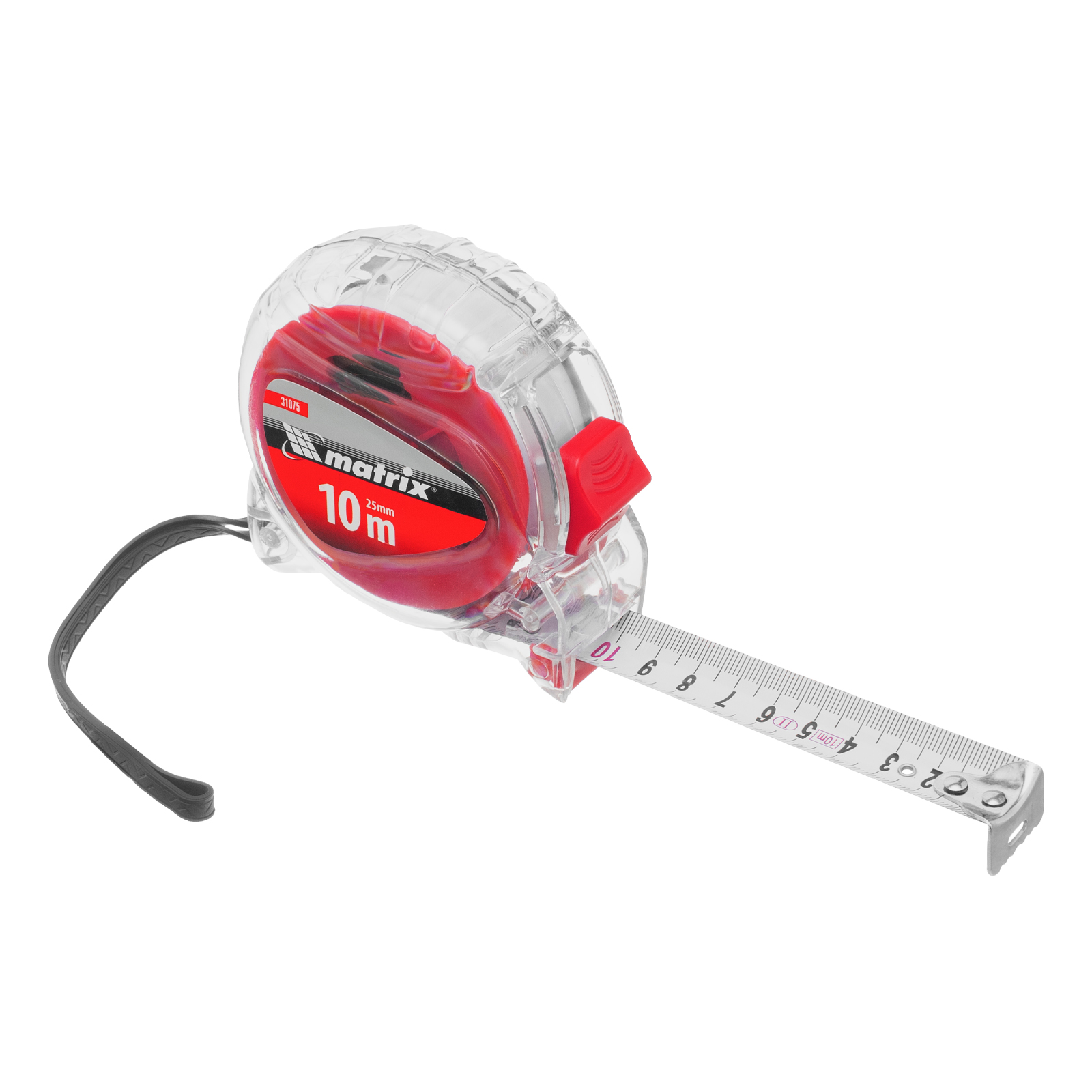 Рулетка Matrix Crystal 31075 с лентой длиной 10 м и шириной 25 мм, в корпусе из поликарбоната, — измерительный инструмент, использующийся как в профессиональной сфере, так и в быту. Отличительной особенностью модели является корпус из высокопрочного поликарбоната, характеризующийся повышенной устойчивостью к механическим повреждениям.