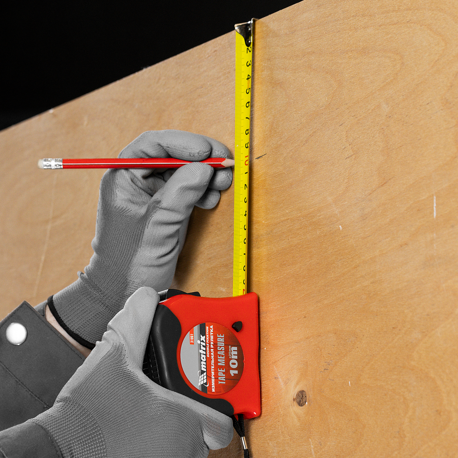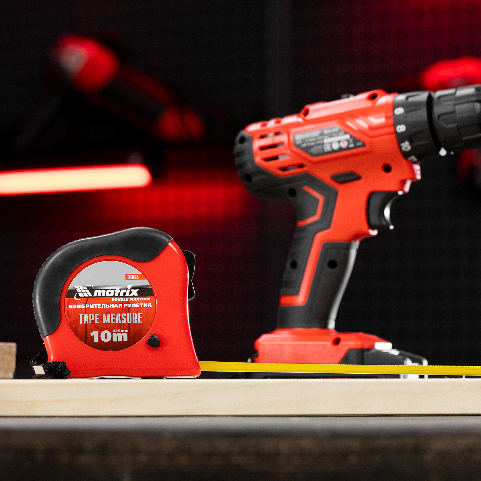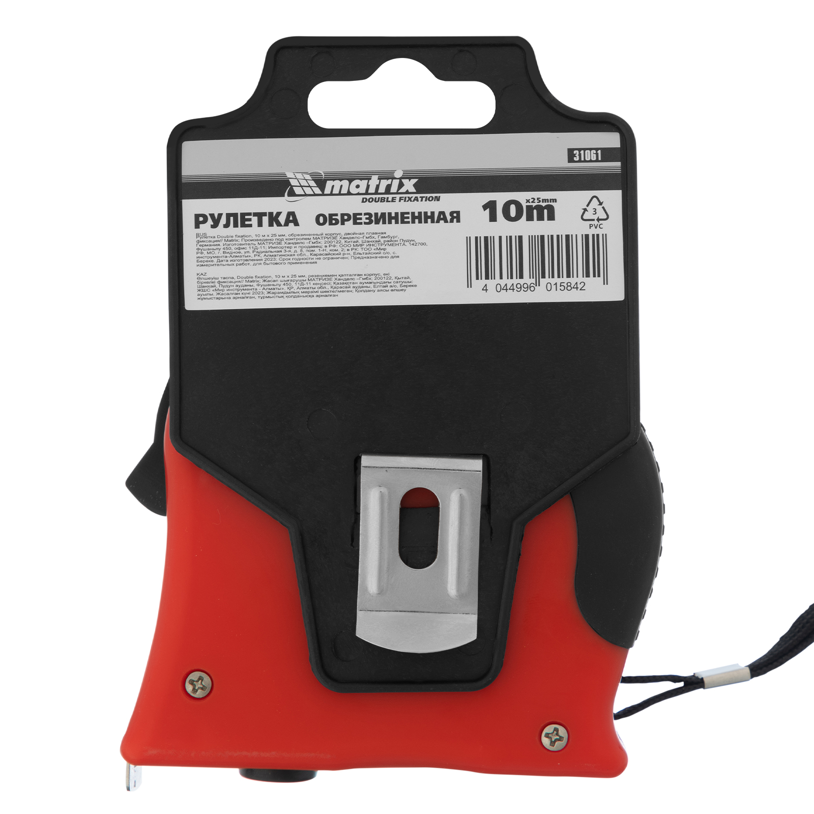 Рулетка Double fixation,10 м х 25 мм,обрезиненный корпус,двойная плавная фиксация Matrix в Уфе