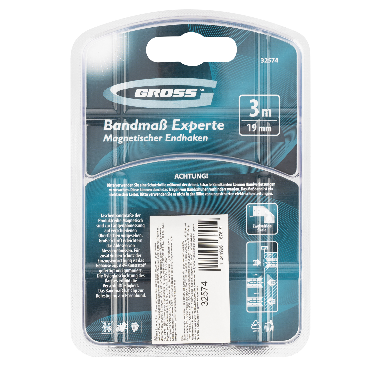 Рулетка Experte,3 м x 19 мм,двухкомпонентный корпус,магнит,двухсторонняя разметка,нейлон Gross в Уфе