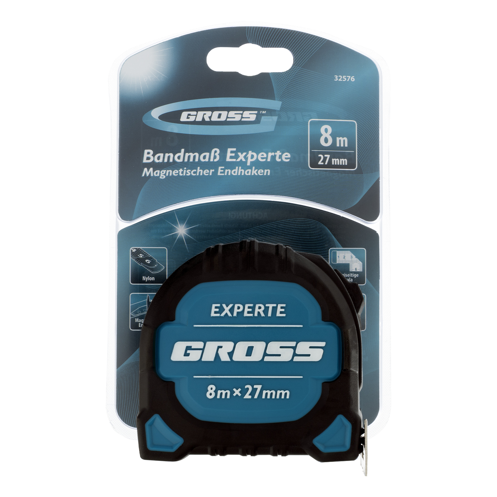 Рулетка Experte,8 м x 27 мм,двухкомпонентный корпус,магнит,двухсторонняя разметка,нейлон Gross в Уфе