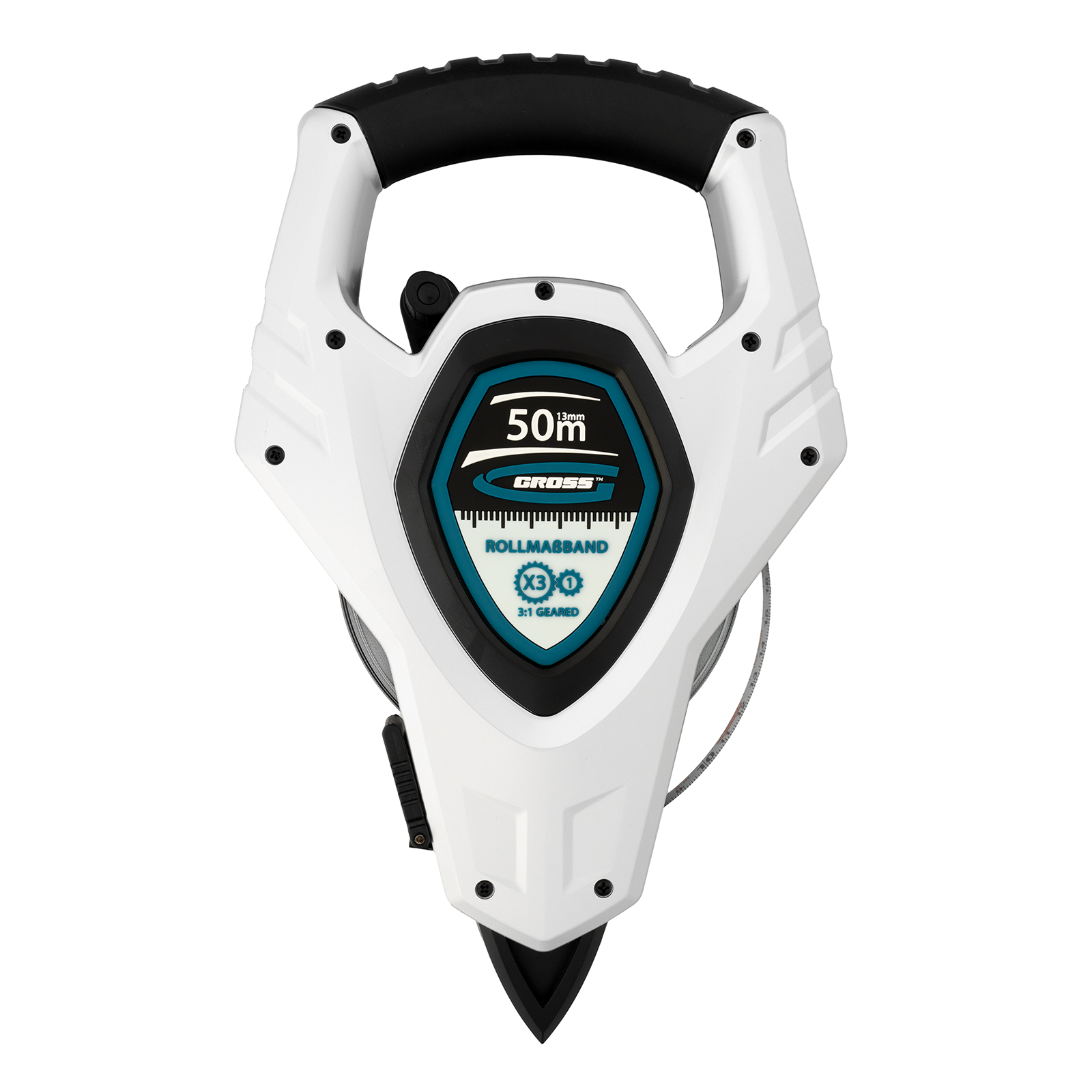 - Быстрая смотка ленты — благодаря коэффициенту оборотов возвратного механизма 1:3 полотно сматывается втрое быстрее, чем на рулетках с обычным механизмом.