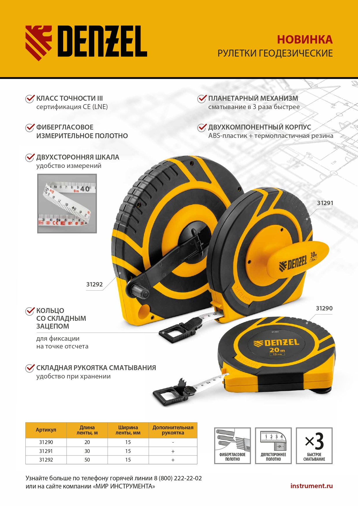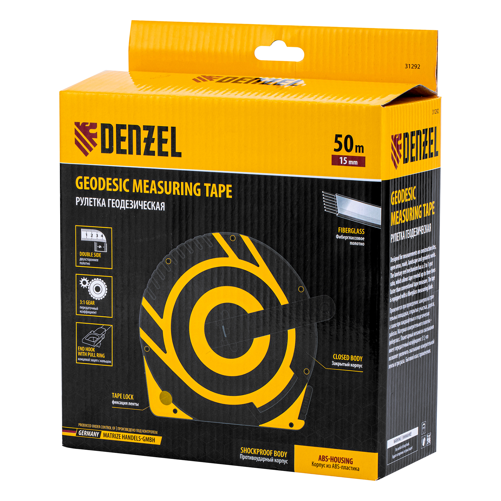 Рулетка геодезическая 50 м х 15 мм, закрытый корпус, фиберглассовая лента Denzel в Уфе