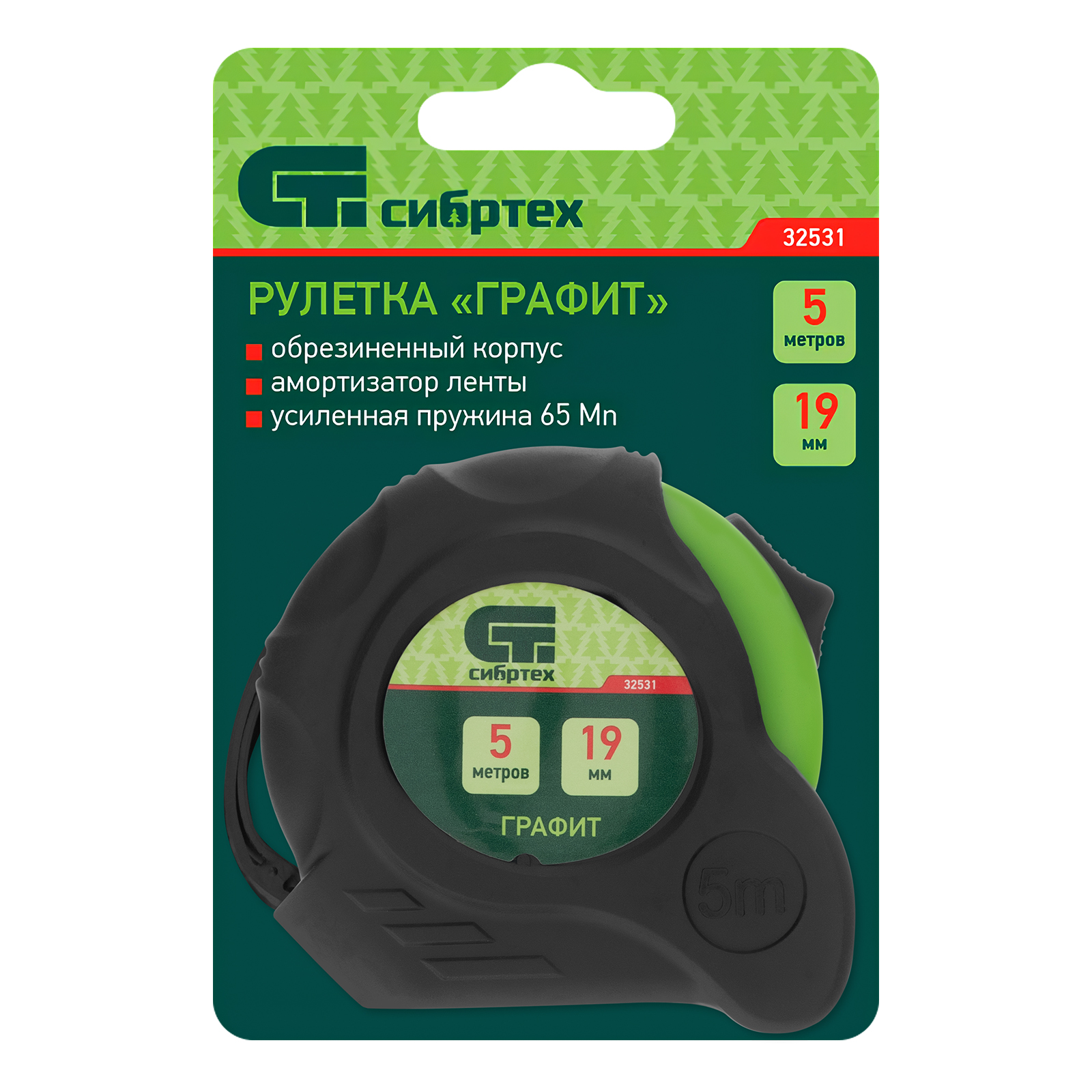 Рулетка Графит,обрезиненный корпус,амортизатор,5 м х 19 мм Сибртех в Уфе